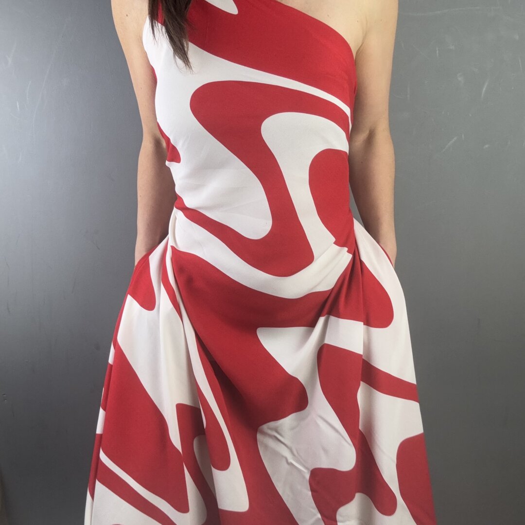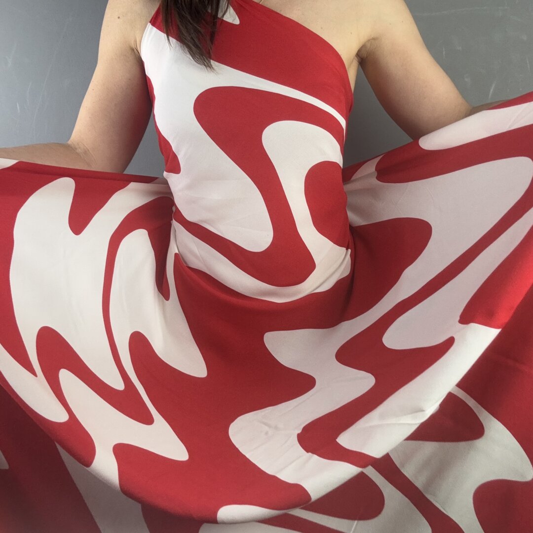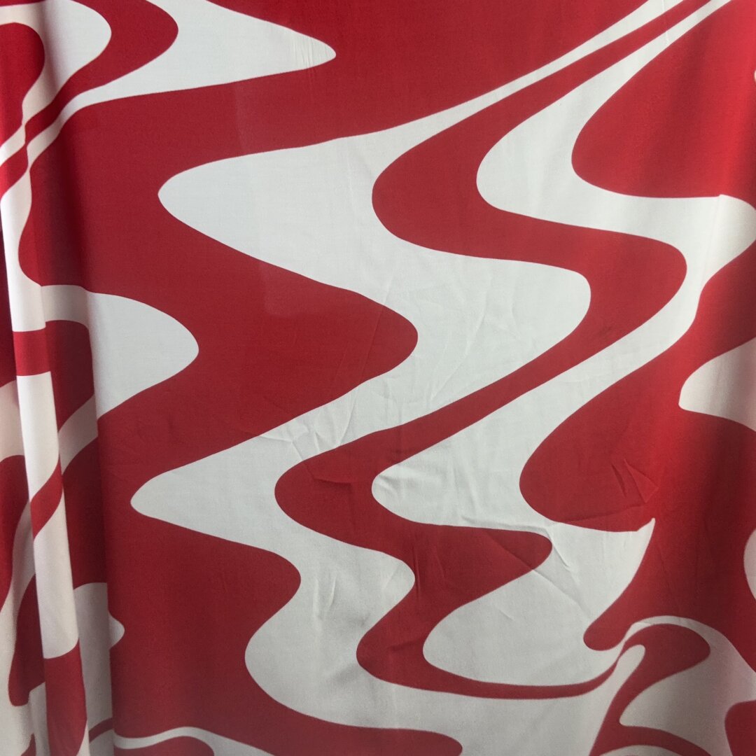 Italian Red Rayon is a beautifully lightweight fabric, 145cm wide, featuring a bold and playful abstract print that feels fresh and full of character. It has a soft, fluid drape that moves effortlessly, making it a dream to sew and wear.