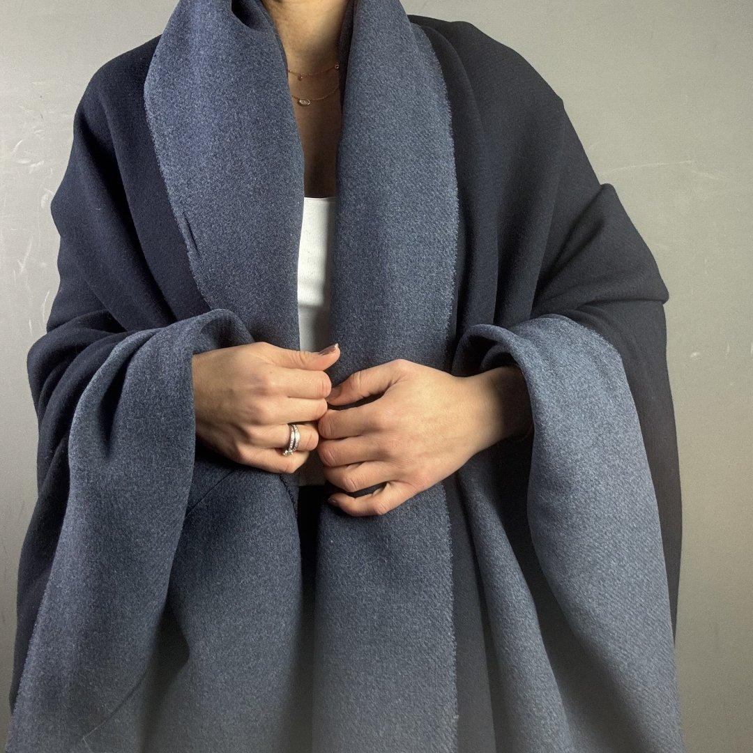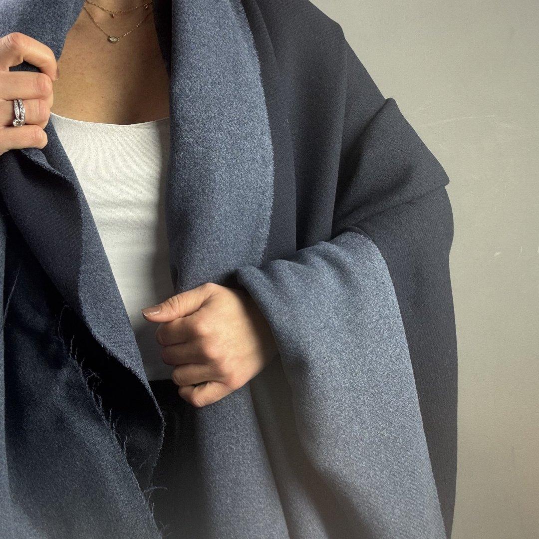This is a reversible dark navy and light blue fabric that will become your  everyday staple garment when is cold outside.