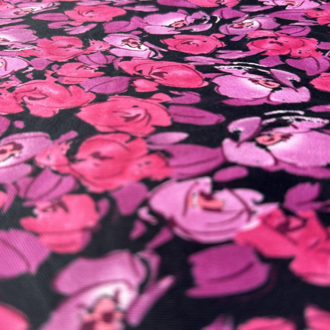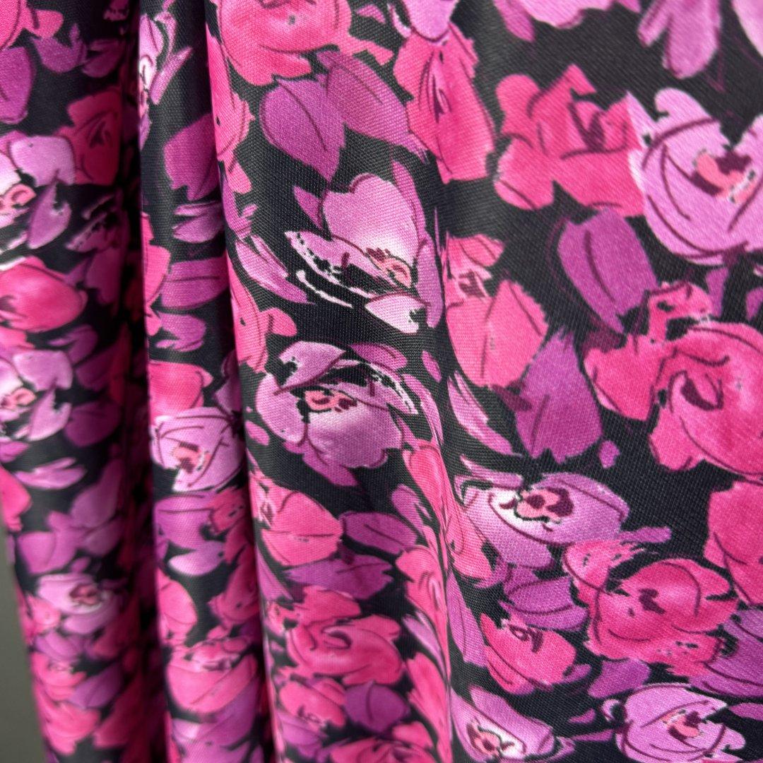Italian Viscose Elastane Pink meadow is 150cm wide. This is a quality jersey fabric with girlie colour tones. This viscose elastane is soft with a heavy drape and perfect for maxi dresses, tight skirts, drape tops, wide leg trousers, leggings, jumpsuits, playsuits, lounge wear and so much more.