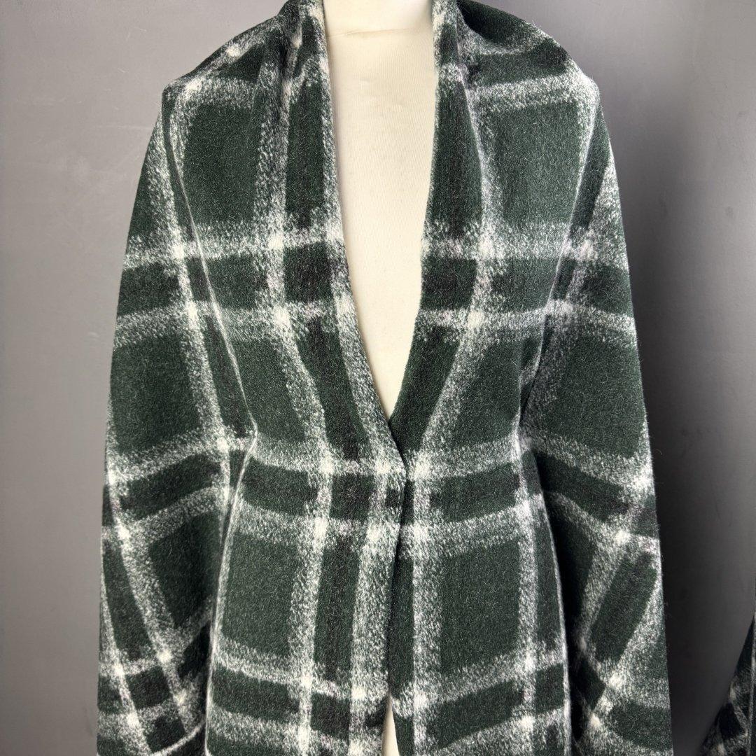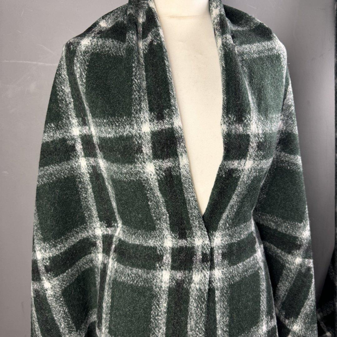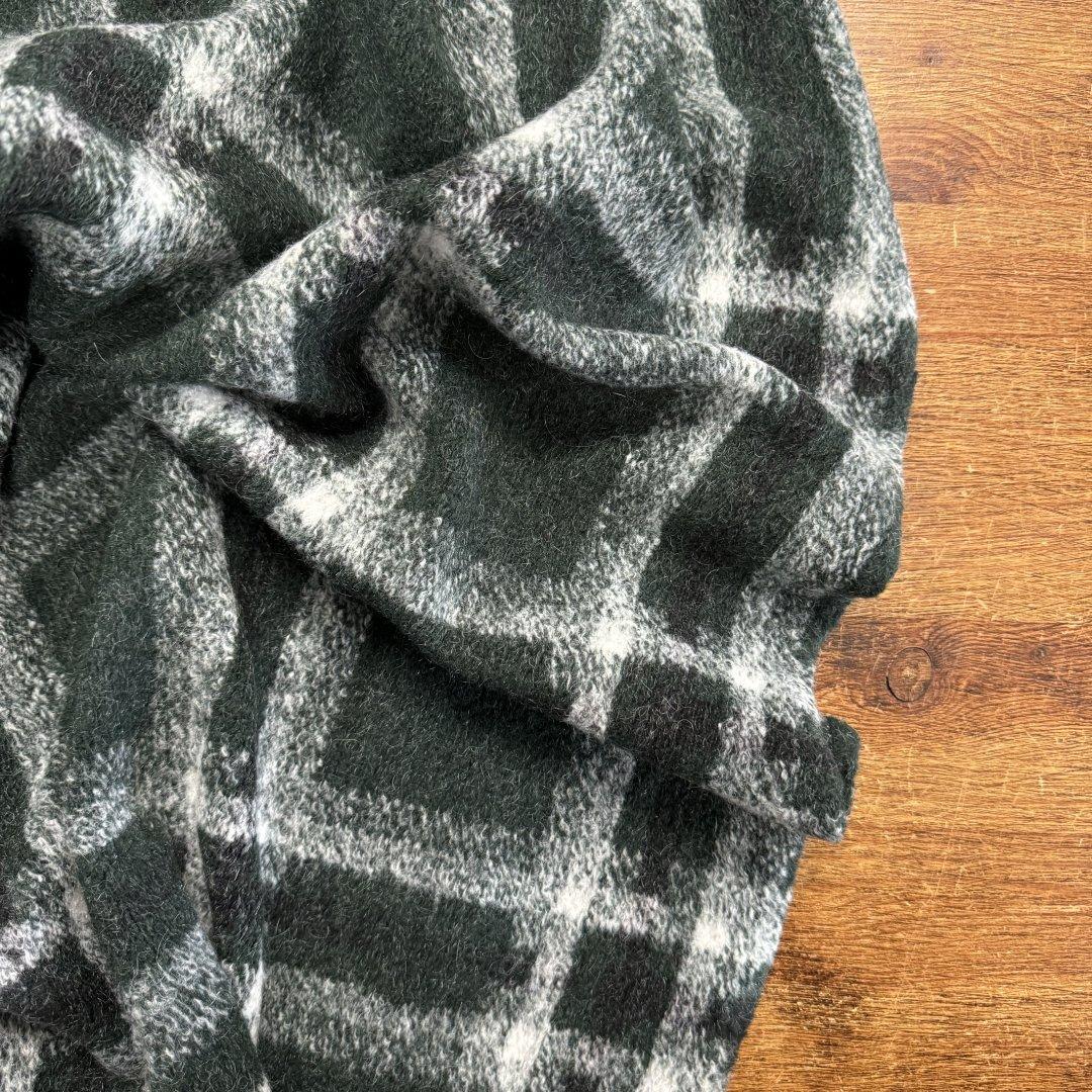 Italian Wool Mix Deep Green Plaid is 150cm wide. This super soft wool mix has a high percentage of wool and is a very classic, timeless cloth. Make this your go to winter cardigan, jumper dress, maxi skirt, jacket and so much more.