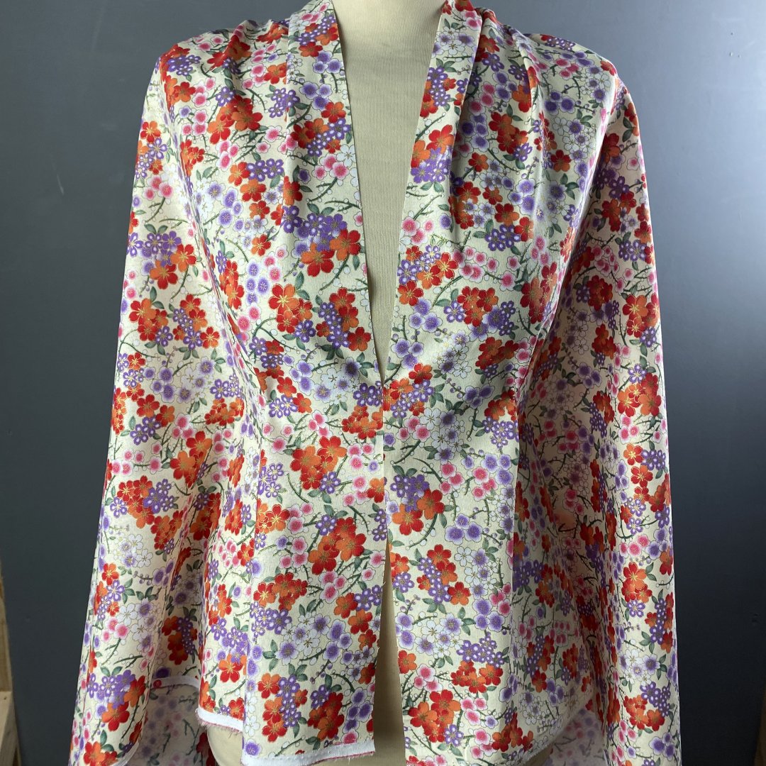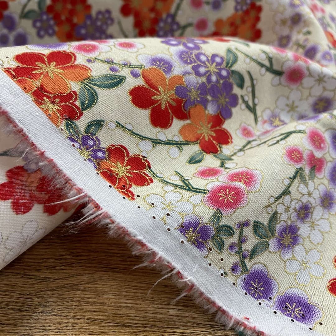 Japanese Foil Flowers is a beautiful pure cotton with foil, 150cm wide. This is a stiff cotton perfect for any garment that requires tucks and pleats. Suitable for Chanel inspired jackets, trousers, shift dresses, straight skirts, boxy tops, shirts and more. Easy to sew and washes well at 30 degrees.