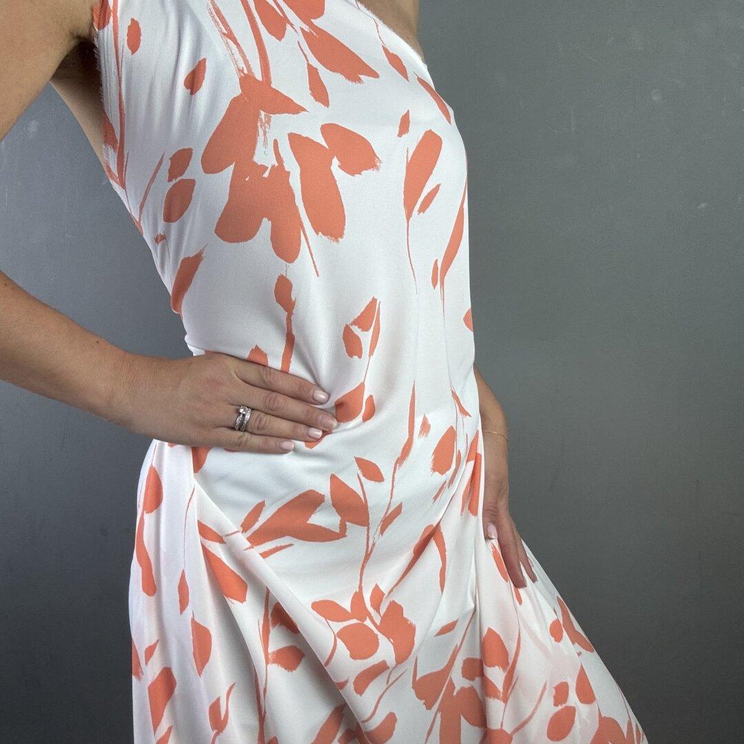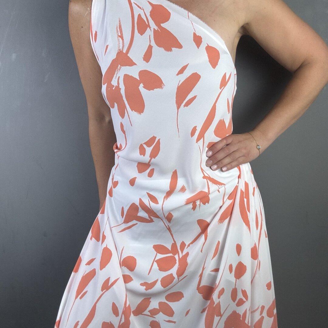John Kaldor Polyester is 145cm wide. This is a light weight fabric with a beautiful fluid drape. It is slightly transparent meaning it will require nude/ flesh coloured underwear or one of our linings.