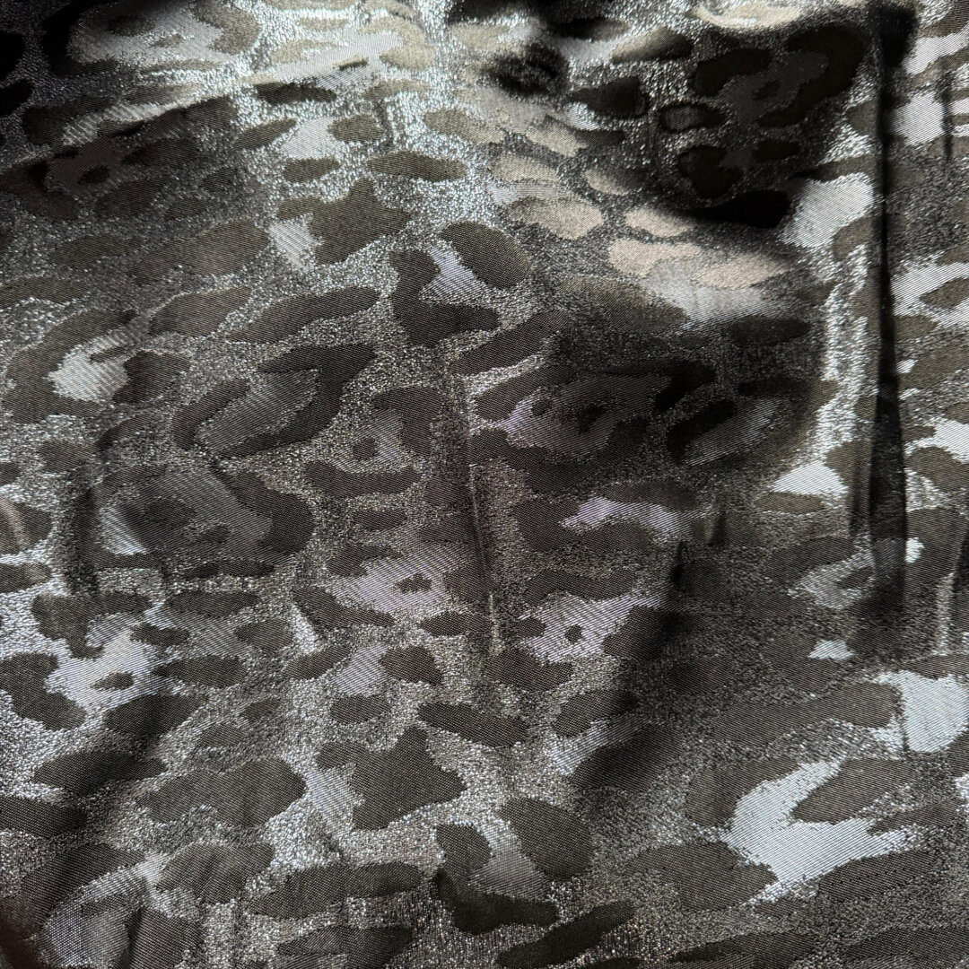 Last Chance To Buy Animal Jacquard , 150cm wide. Featuring this beautiful lurex animal print design in a jacquard fabric perfect to create, dresses, tops, jumpsuits , and so much more. This fabric drapes and glides beautifully and is perfect to sew with. It is a season must have and a great fabric for any season!