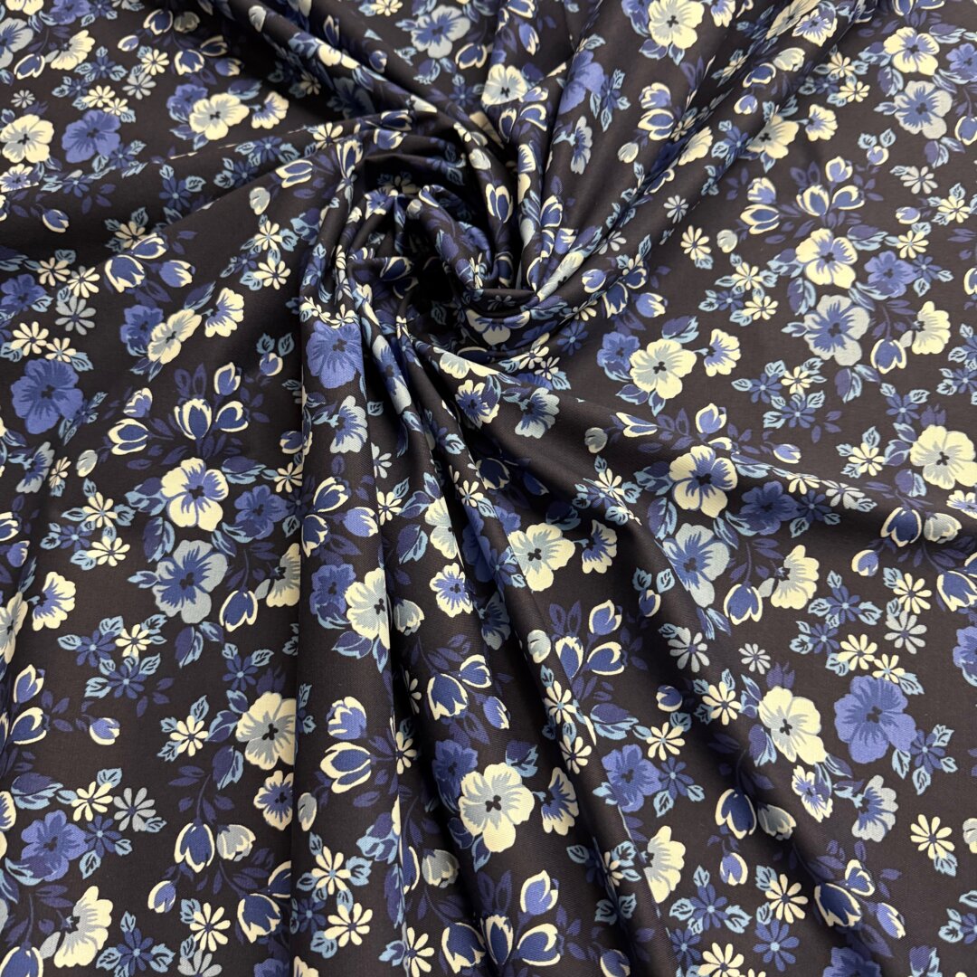 Pure Cotton , 145cm wide. Featuring this beautiful blue floral print design , perfect for the upcoming Spring Summer season! Ideal to create dresses, tops, co- ords, blouses and more.