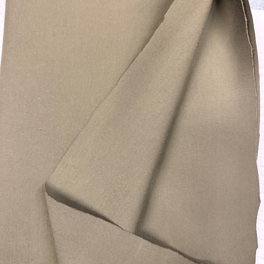 Last Chance To Buy Khaki 4 Way Stretch, 145cm wide. Featuring this beautiful shade of khaki in the ultimate 4 way stretch fabric which is so versatile and such a flattering fabric perfect to create, dresses, tops, trousers and so much more. This fabric drapes and glides beautifully and is perfect to sew with. It is a season must have and a great fabric for any season!