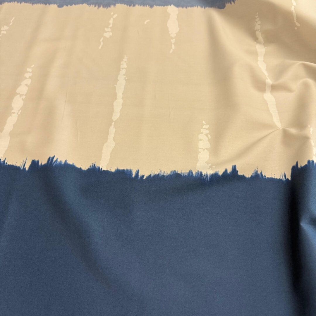 Last Chance To Buy Italian Tie Dye Pure Cotton, 145cm wide. Featuring this beautiful all over tie dye print in a pure cotton fabric with stunning shades of blue perfect to create, dresses, tops, shirts , blouses and so much more. This fabric drapes and glides beautifully and is perfect to sew with. It is a season must have and a great fabric for any season!