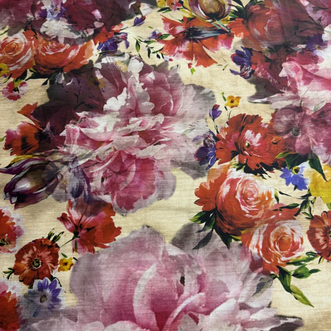 Cotton Lycra, 145cm wide. Featuring this beautiful vintage floral print design , perfect for the upcoming season! Ideal to create dresses, tops, co- ords ,skirts, shirts, blouses and more.