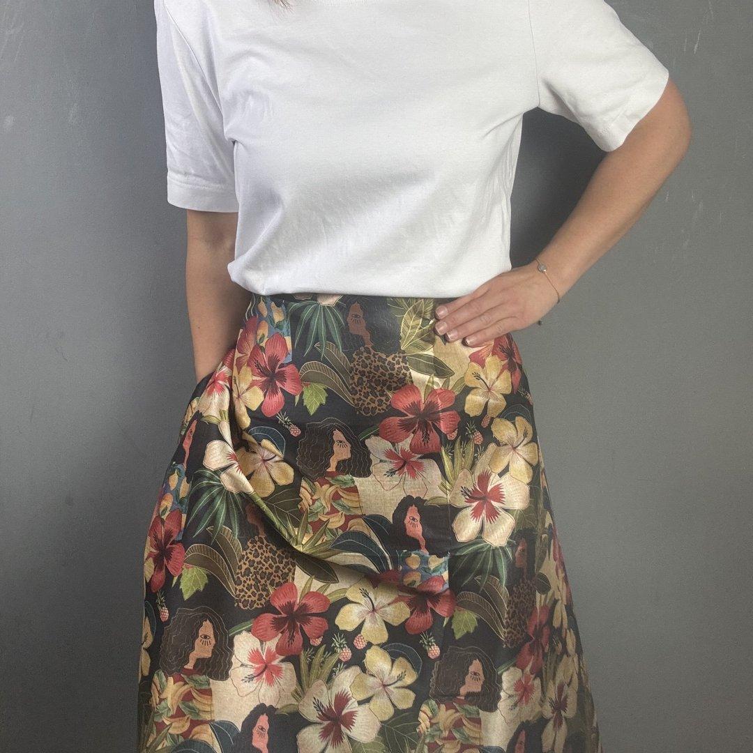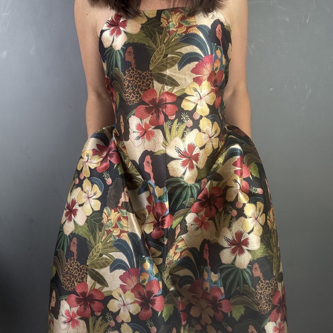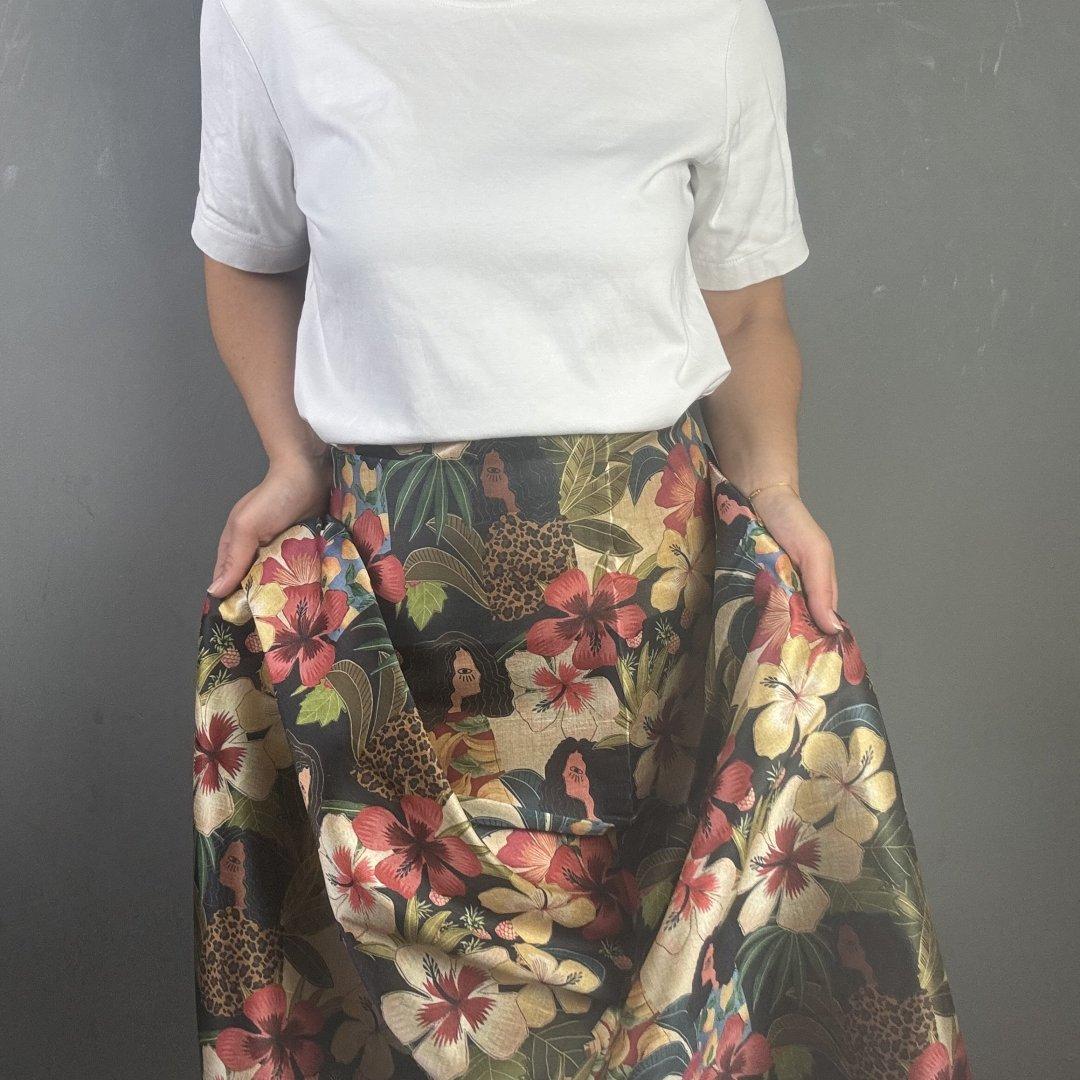 Life in the Jungle Bamboo is 20% Bamboo / 40% Viscose / 40% polyester, 110cm wide. This is a light weight, breathable fabric that is perfect for shift dresses, circler skirts, pleated skirts, shirts, tunic tops, straight skirts, summer weight jackets, A- line skirts/ dresses and so much more.