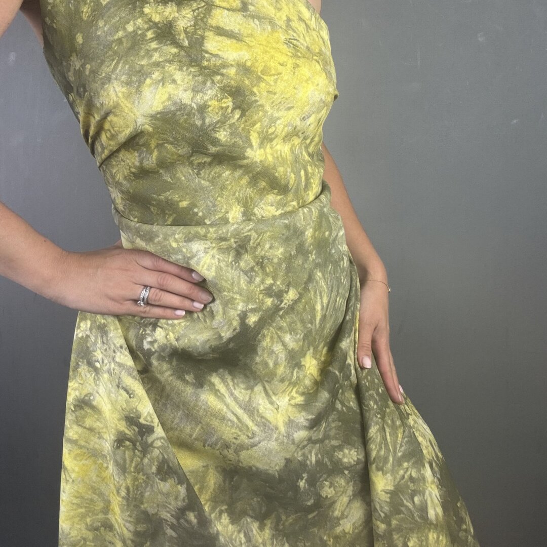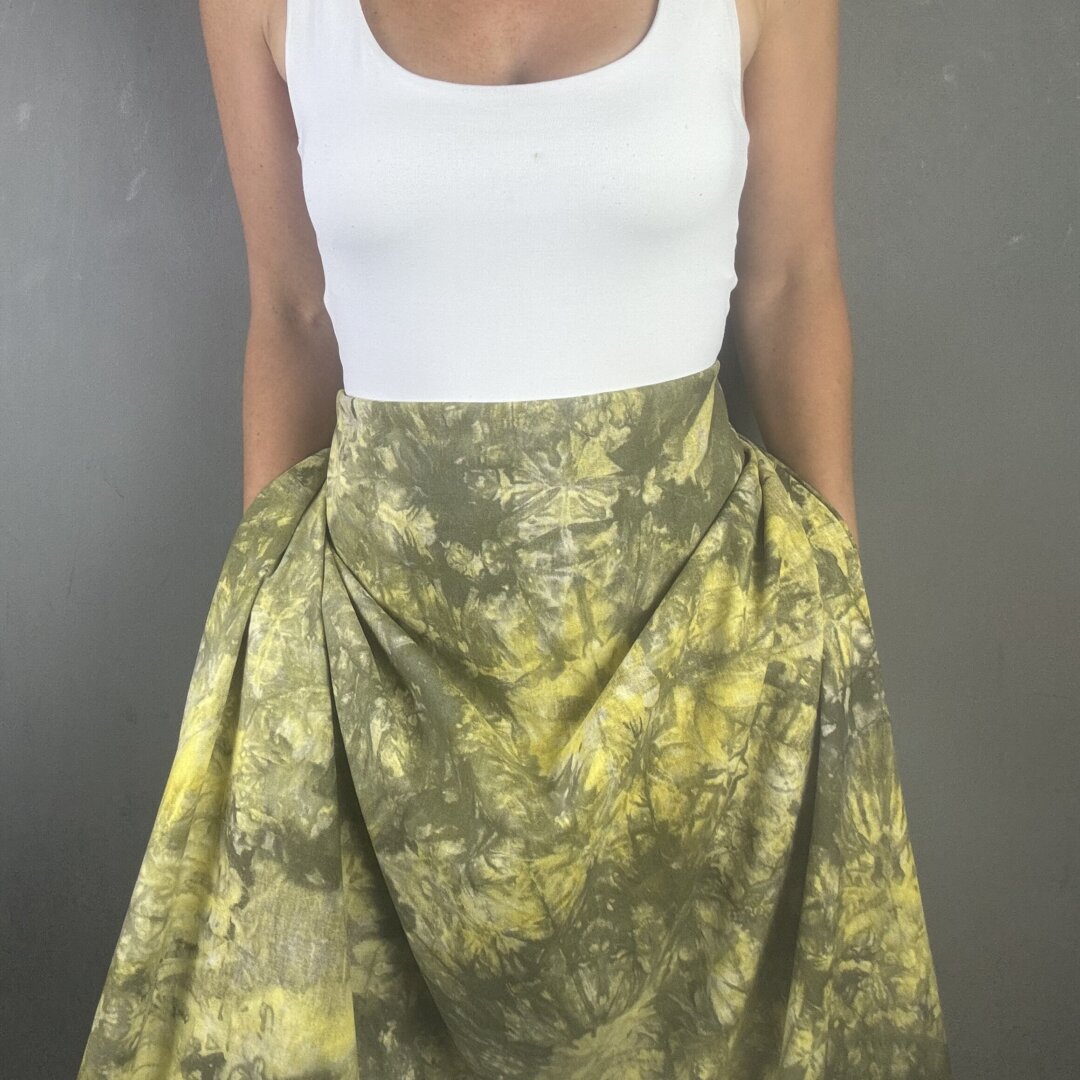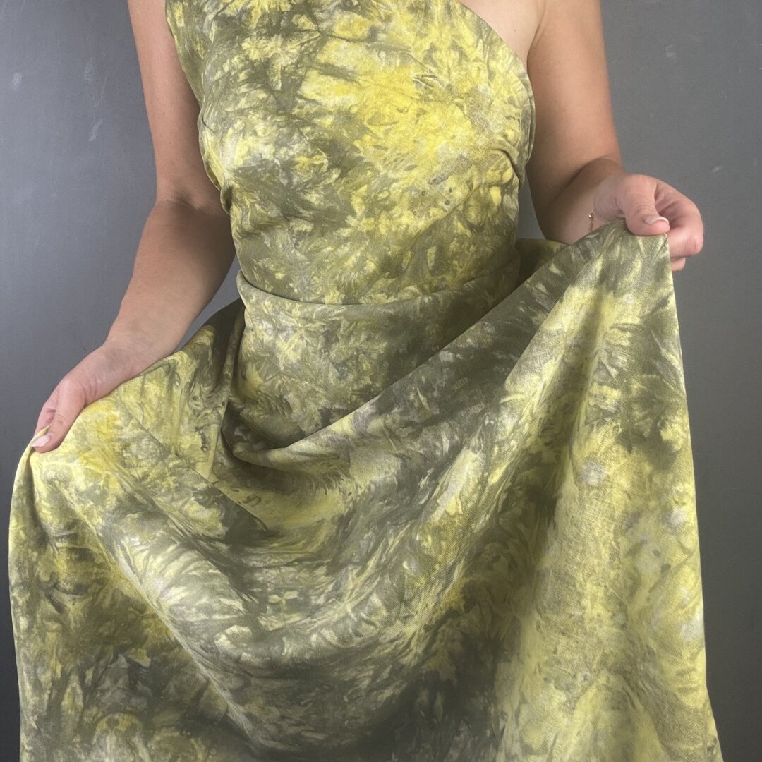 Linen and Rayon Tye Dye Lime fabric is ideal for circle, a- line, pleated, gathered skirts and dresses. Also, perfect for shift dresses, maxi dresses, tops, shirts, light weight summer jackets and more.