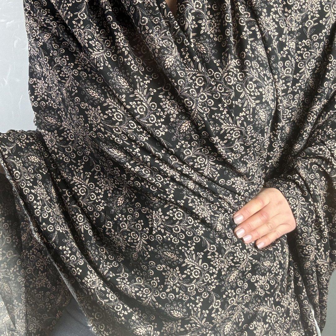 Little Print Rayon is 150cm wide. This is a light weight swishy fabric ideal for skirts, dresses, tops, loose trousers, jumpsuits and so much more.