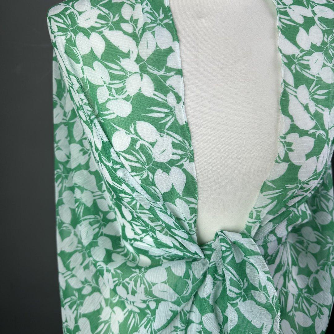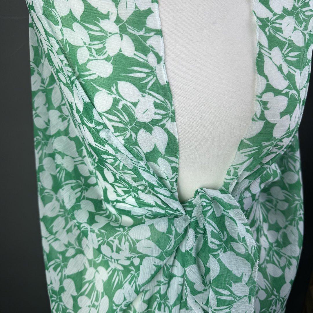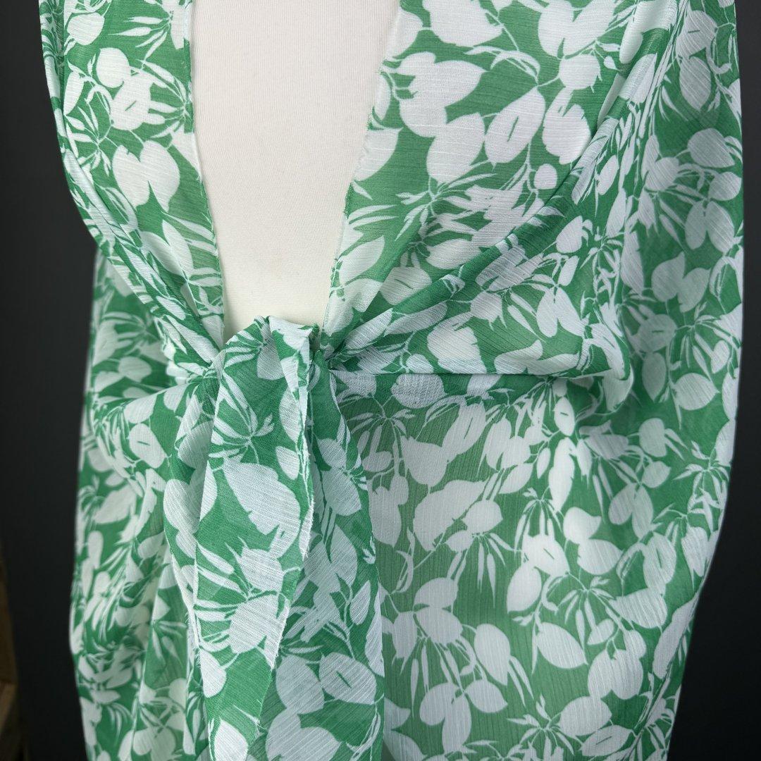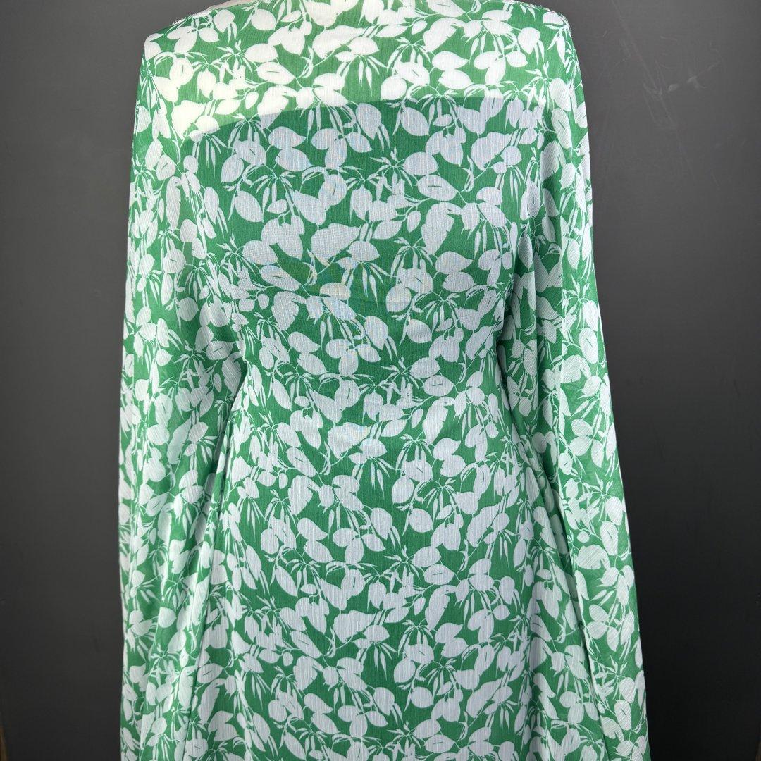 Minty Flowers is 150cm wide. This is a light weight, transparent crinkle polyester. With lots of flowers coving the entire fabric this cloth is ideal for maxi dresses, shirts, tops, beach wraps, kaftans and more.