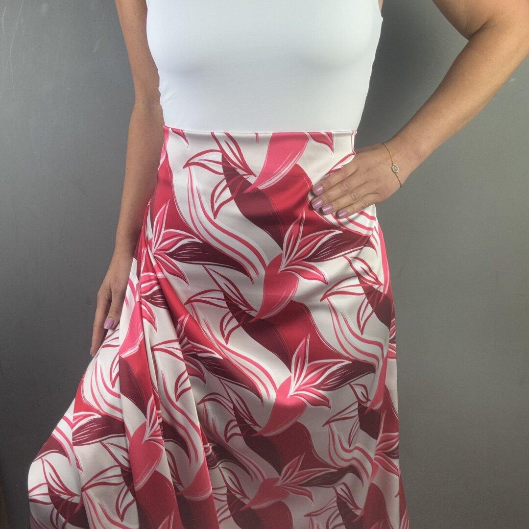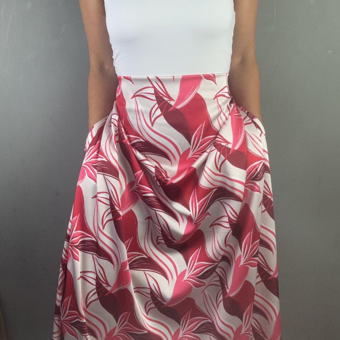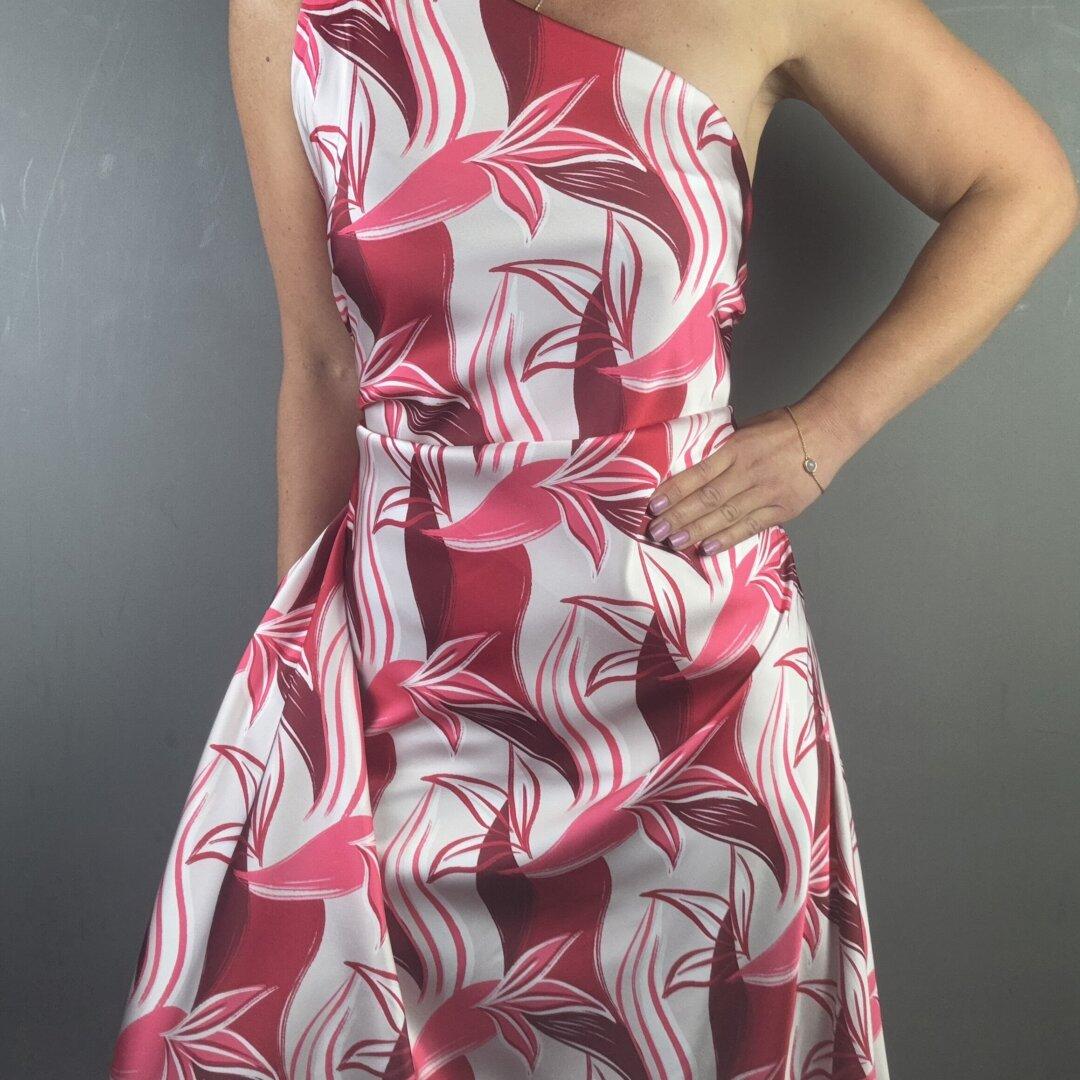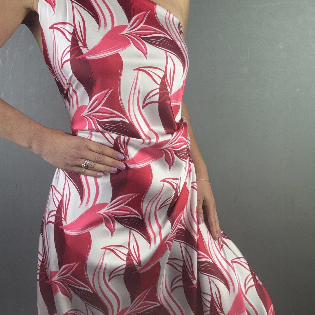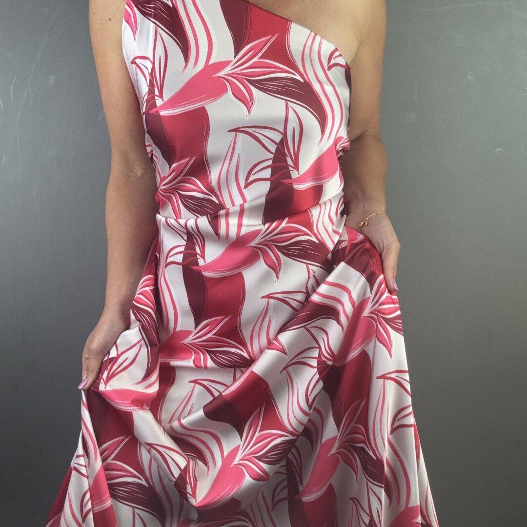 This cloth will swish and drape with the movement of your body. Pink Twist will create such an iconic statement garment. The warm colours create a stylish and chic look that is a summer must have.