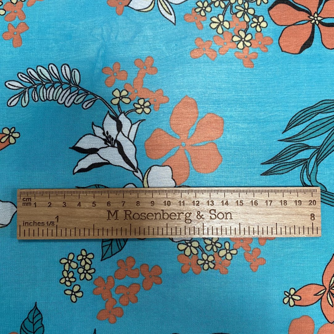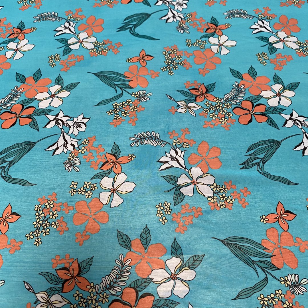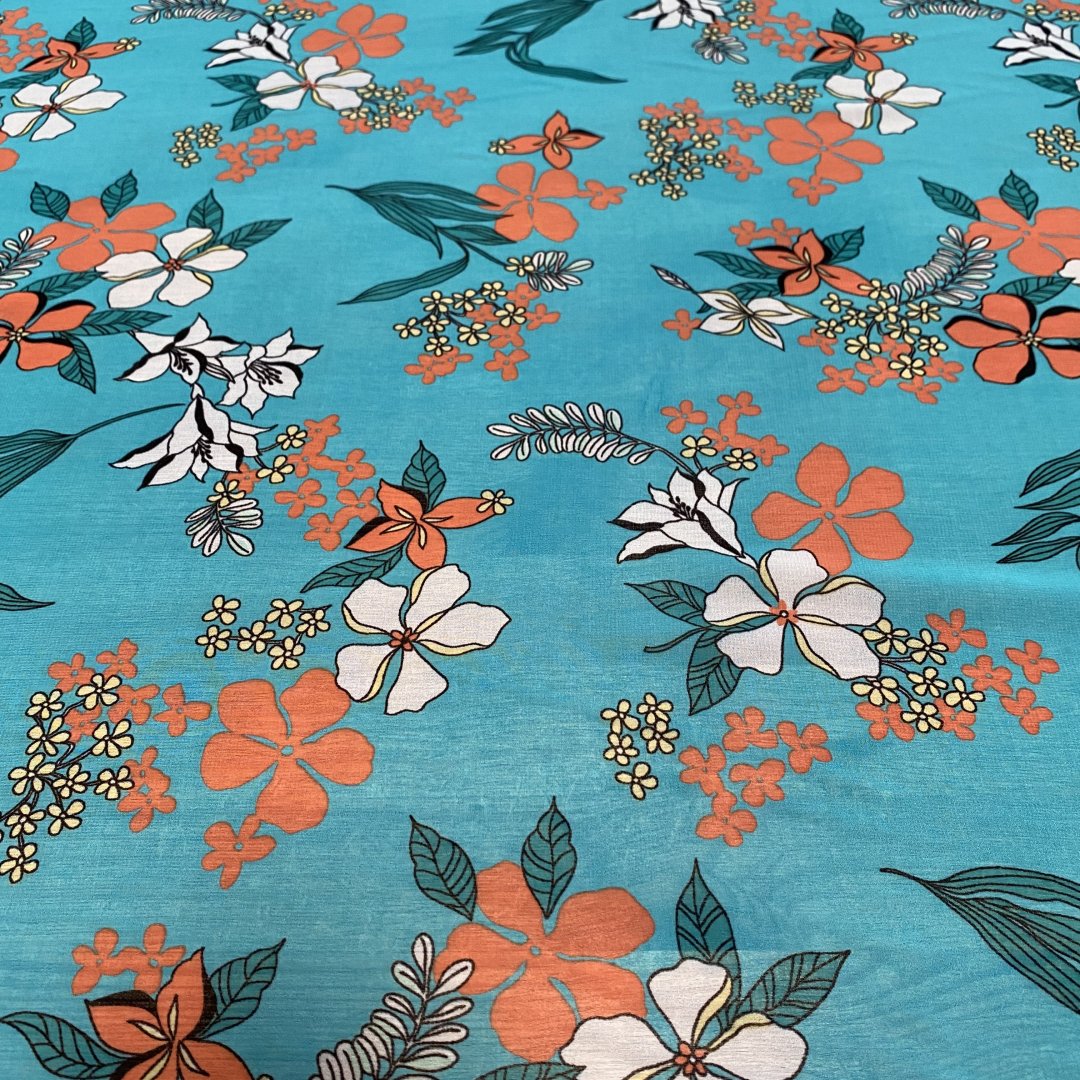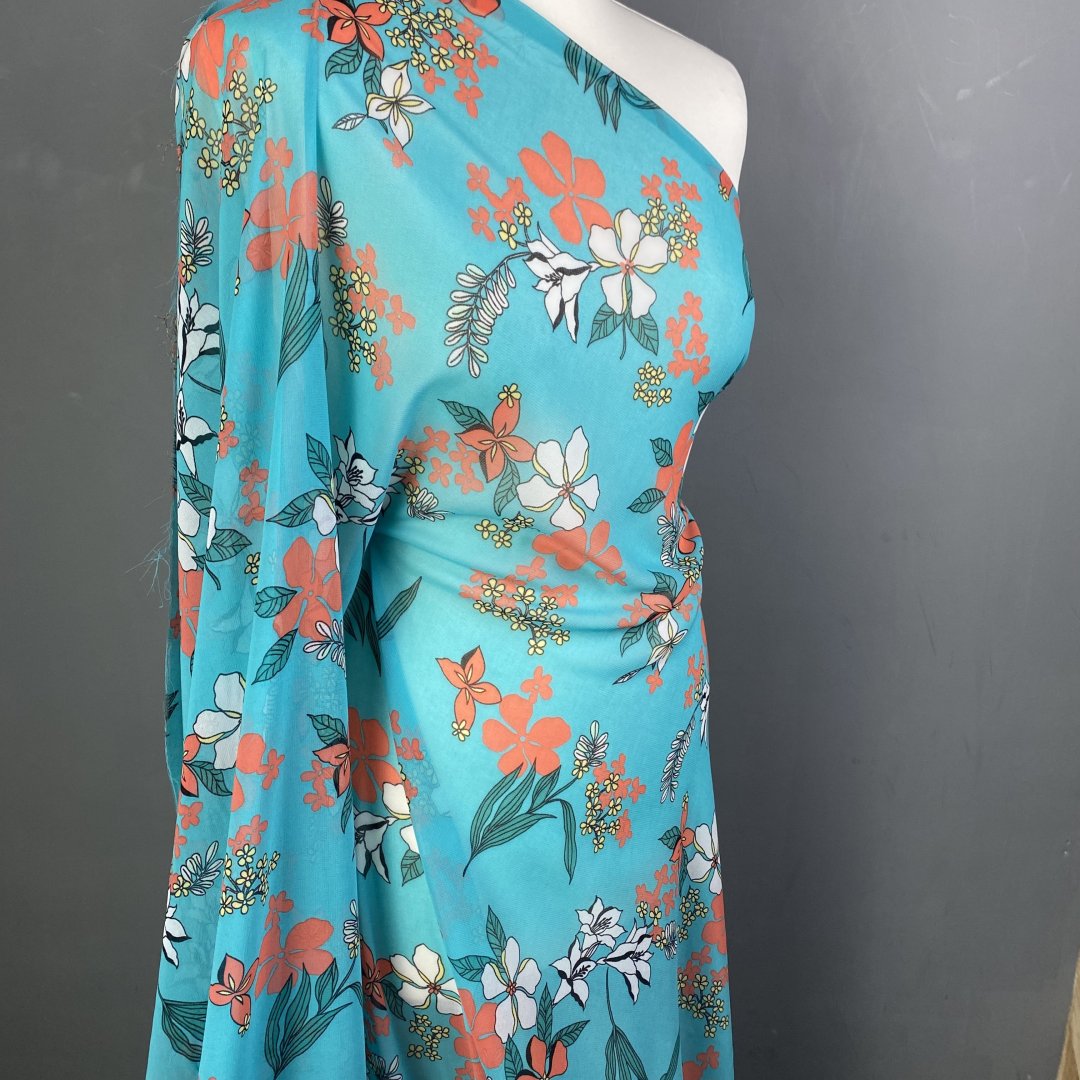 Polyester Chiffon Turquoise Tone is 145cm wide. This is a light weight transparent cloth with a fluid drape that is ideal for floaty summer dresses, tiered skirts, shirts, tops, kaftans and more. Beautiful colour tone provide a fresh summer feel to this polyester chiffon.