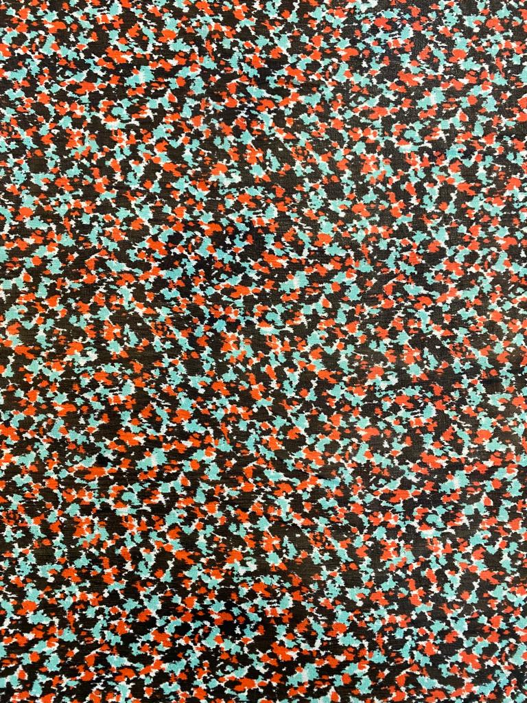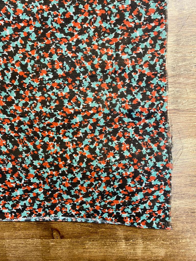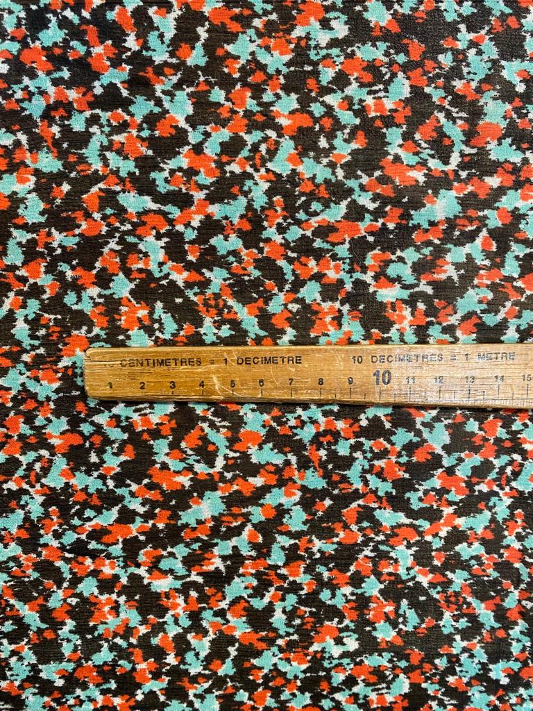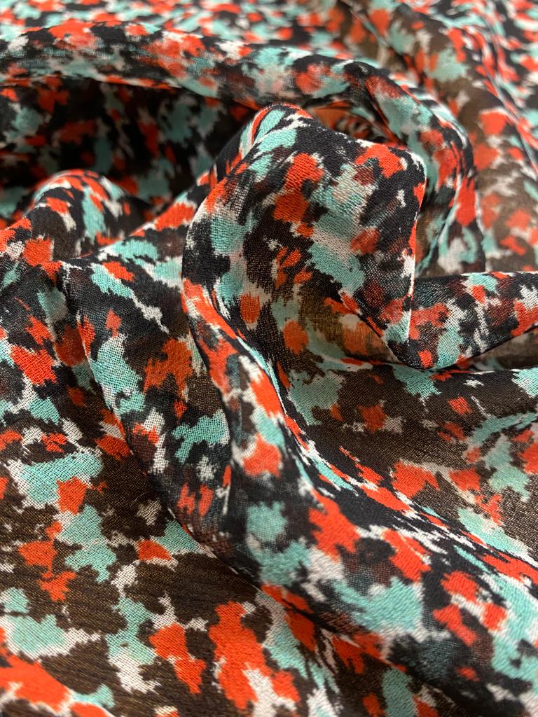 Polyester Crepe Georgette Busy Spring is a light weight, transparent cloth, 148cm wide. This is a busy all over print suitable for tops, shirts, maxi dresses, skirts and more. This cloth is slightly transparent and will require a slip or a lining depending on your garment.