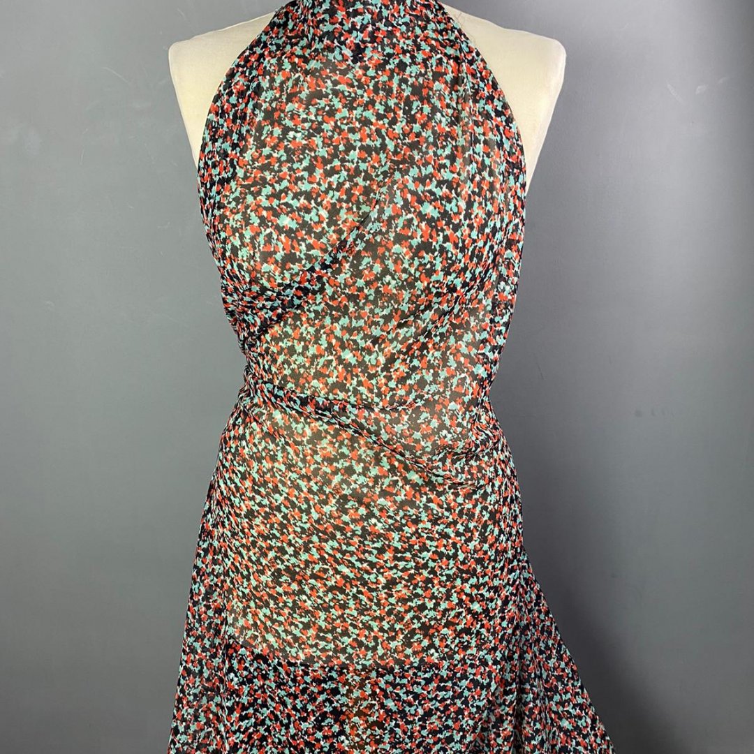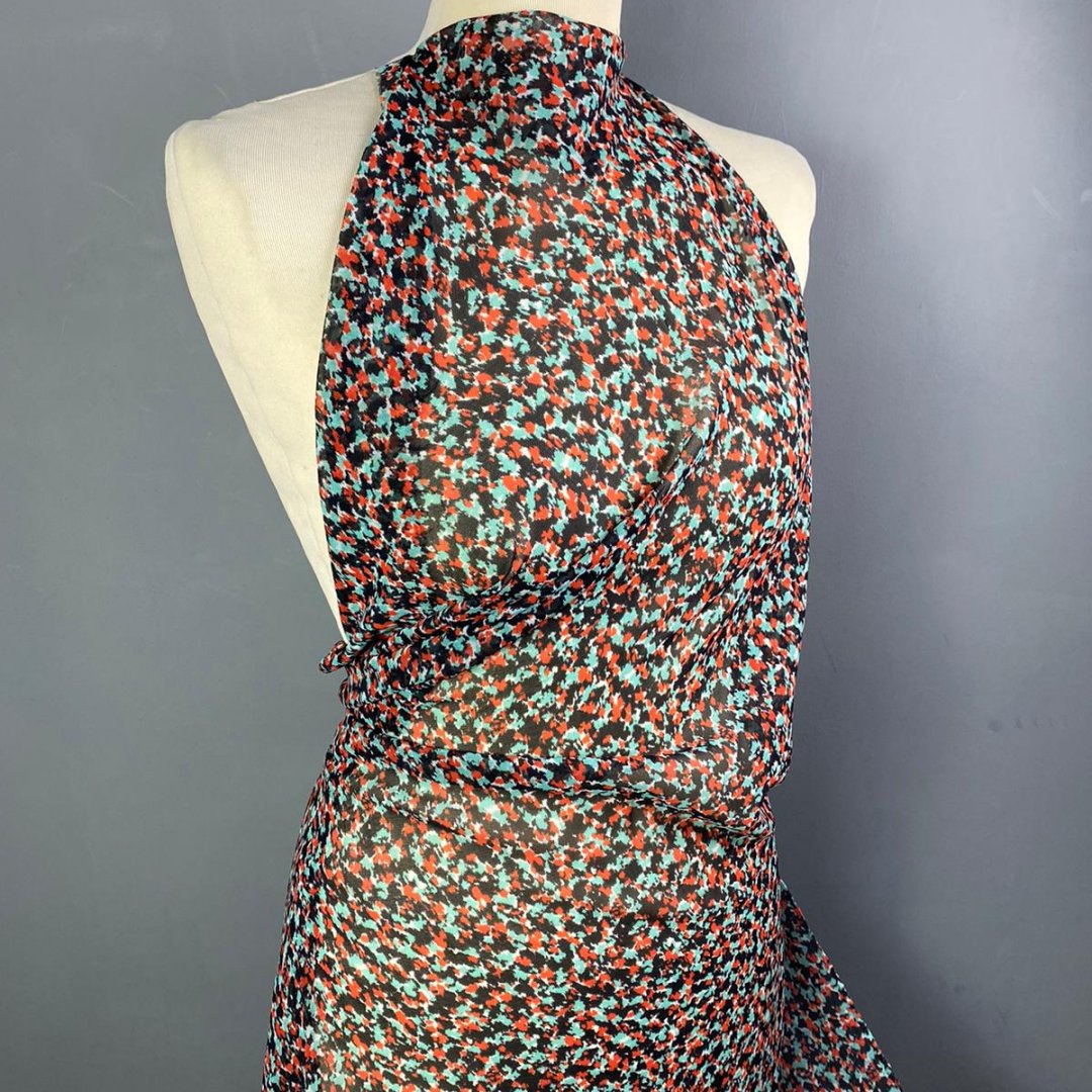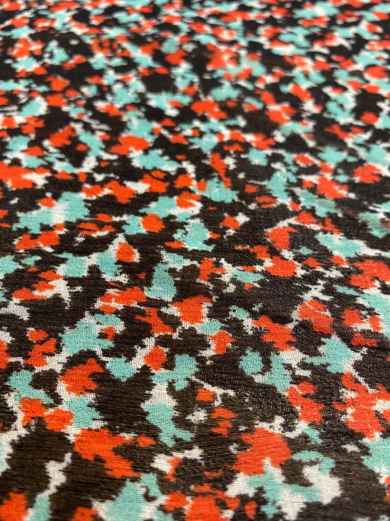 Polyester Crepe Georgette Busy Spring is a light weight, transparent cloth, 148cm wide. This is a busy all over print suitable for tops, shirts, maxi dresses, skirts and more. This cloth is slightly transparent and will require a slip or a lining depending on your garment.