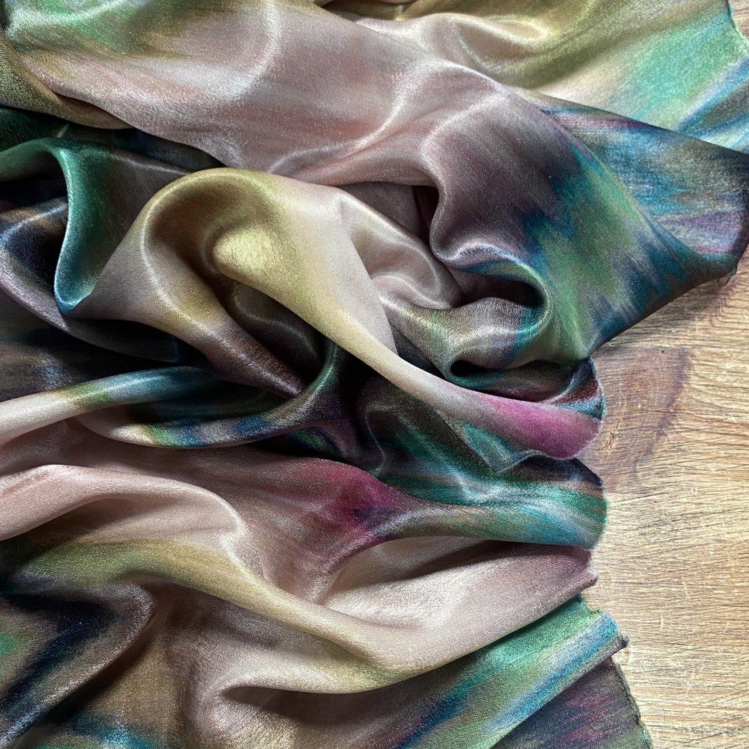 Polyester Sand Waves is 150cm wide. This is a gorgeous light weight polyester satin perfect for simple maxi dresses, jumpsuits, skirts, tops, kaftans and so much more. Polyester Save Waves is ideal for day and evening wear. With complimenting colours this is such a beautiful cloth. Grab it while stocks stock!!