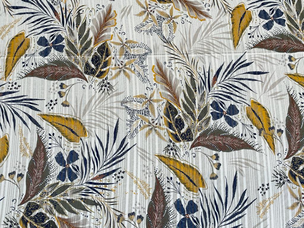 Printed Leaves is polyester, 150cm wide.
