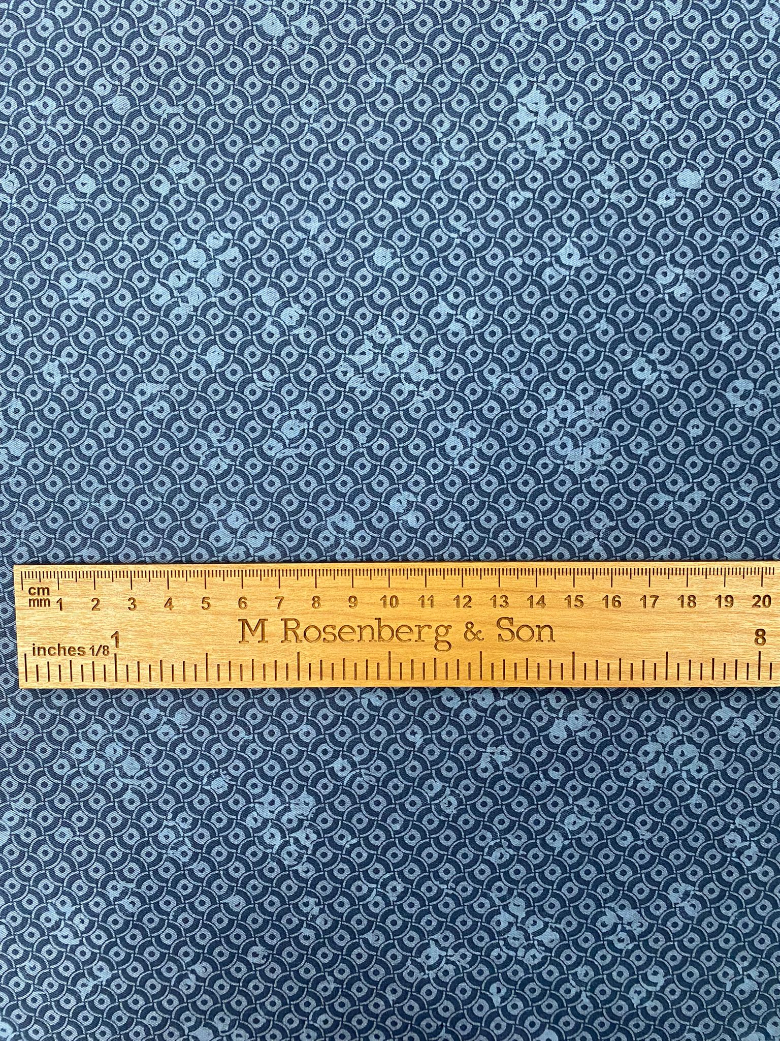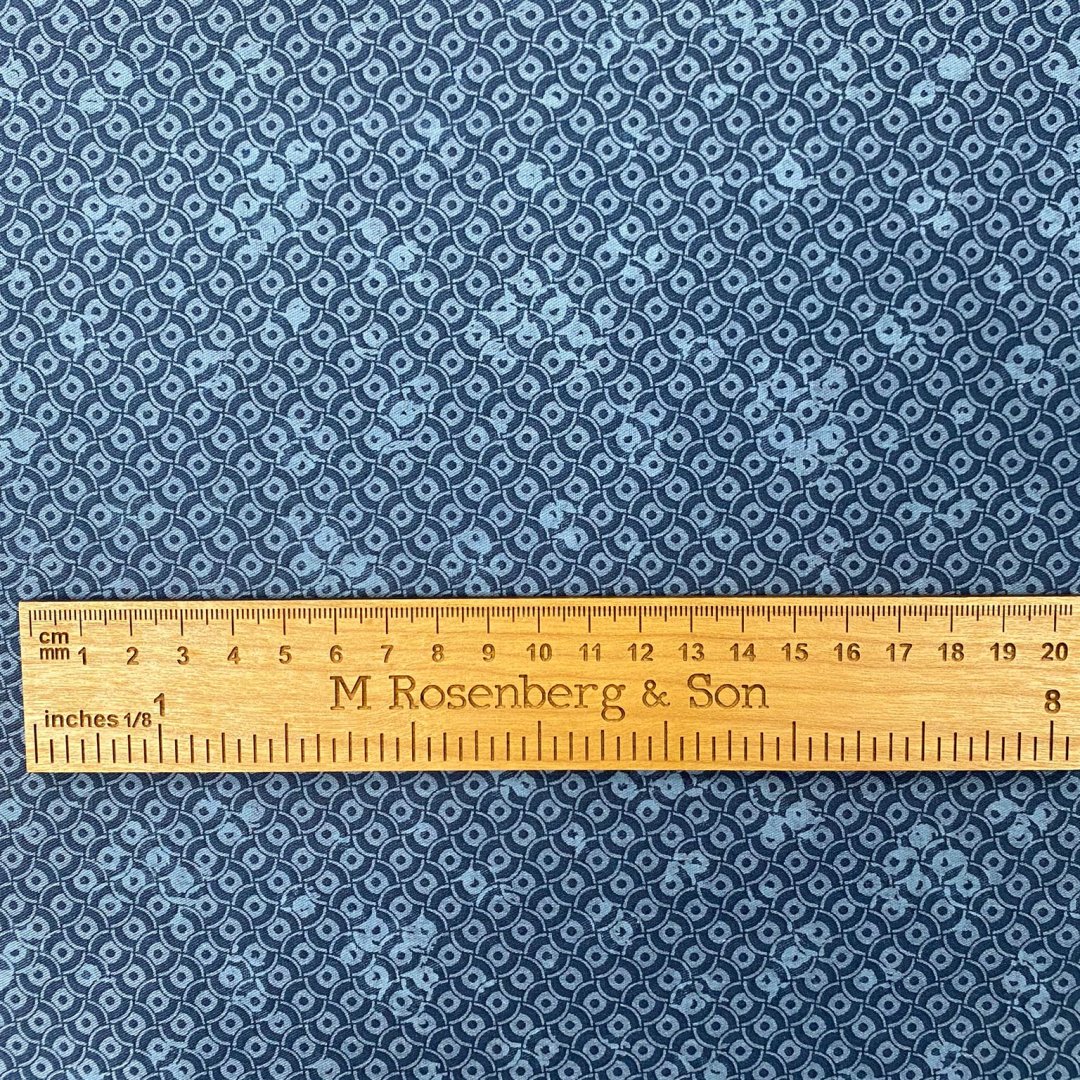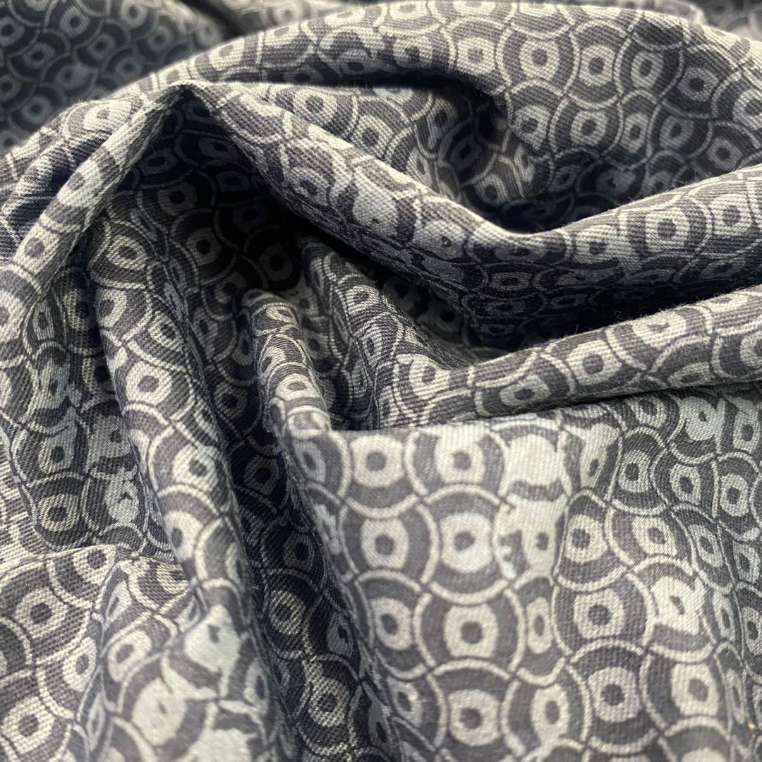 Pure Cotton Italian Sequin Chambray is 150cm wide. This is a light- medium weight quality chambray that is easy to sew and washes well at 30 degrees. Chambray is ideal for shift dresses, mini skirts, trousers, bags, crafts and more. This is a busy all over vintage inspired sequin print. It is a light blue colour with grey-tones – not as brightly blue as in the mannequin pictures.