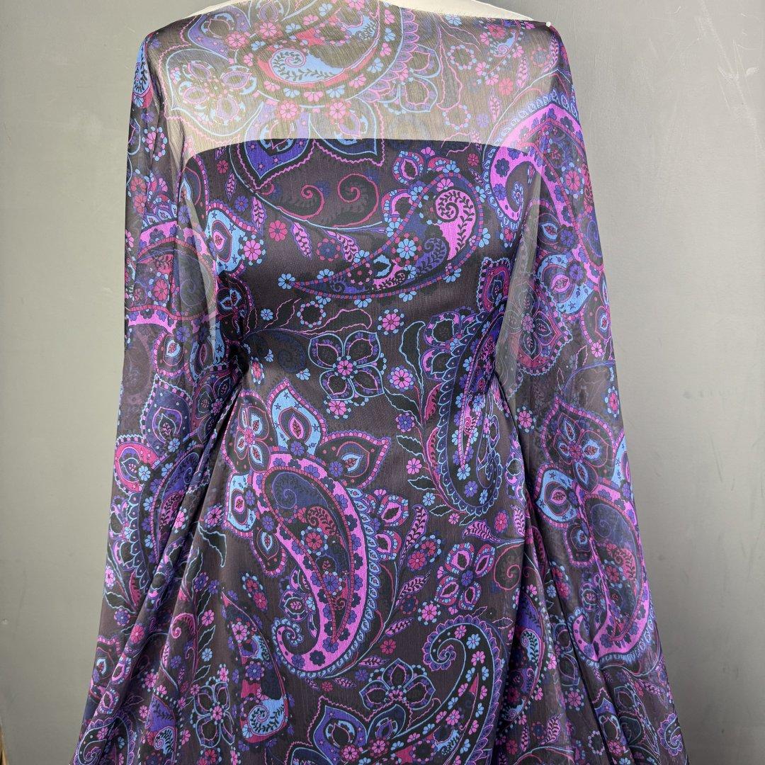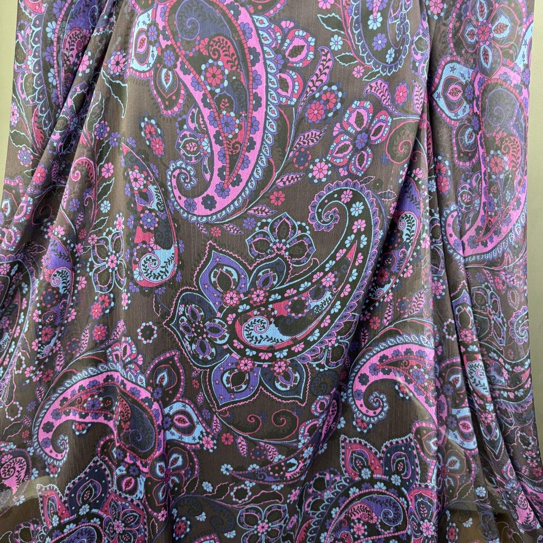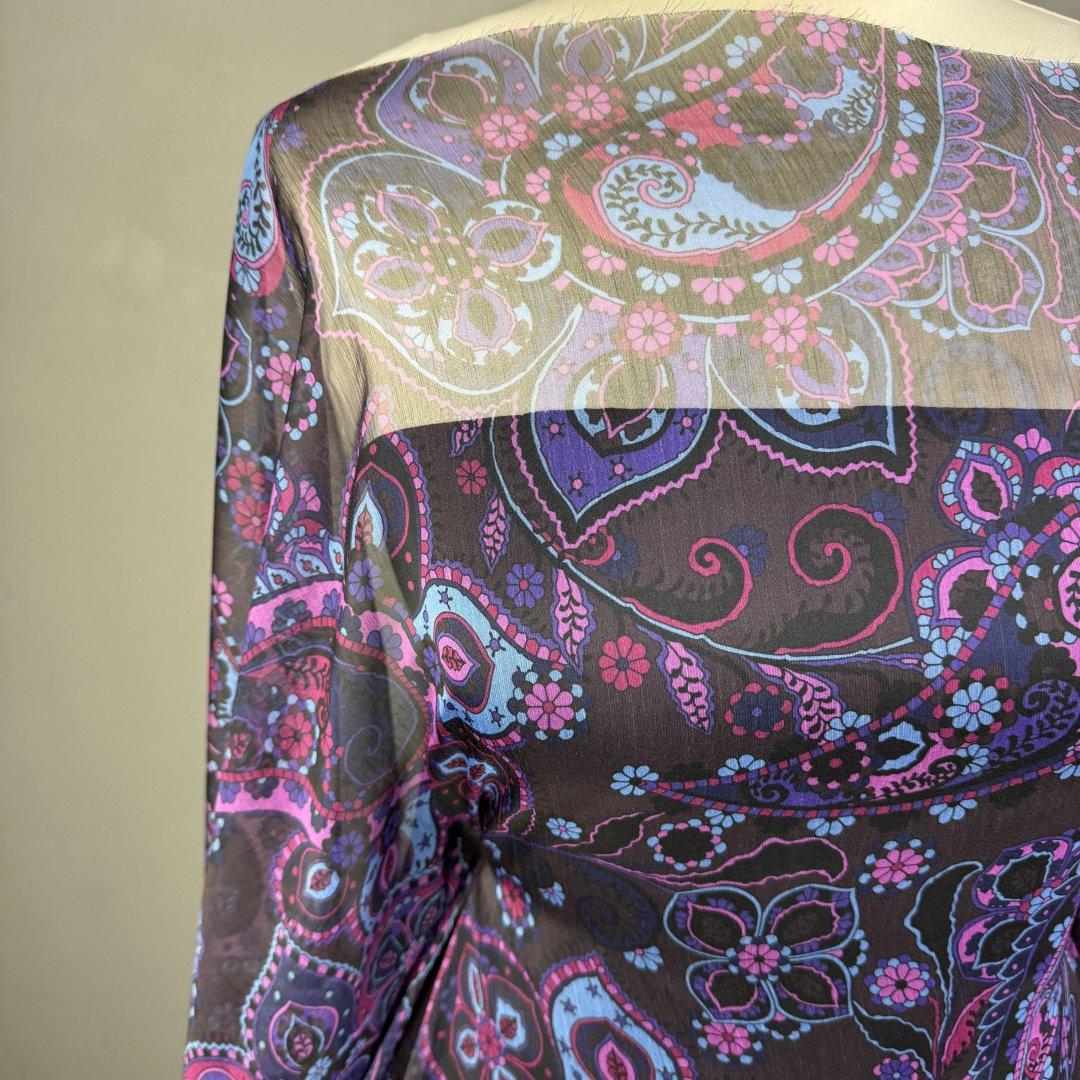 Purple Crinkle is 150cm wide. This is a light weight, transparent, crinkle polyester with a floaty fluid drape that is ideal for blouses, maxi dresses, beach wraps, scarves and so much more.