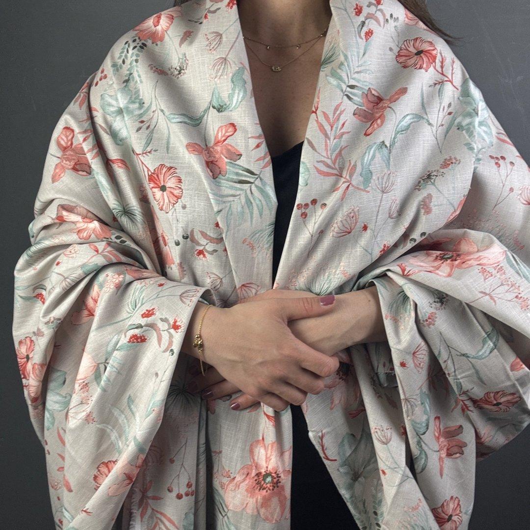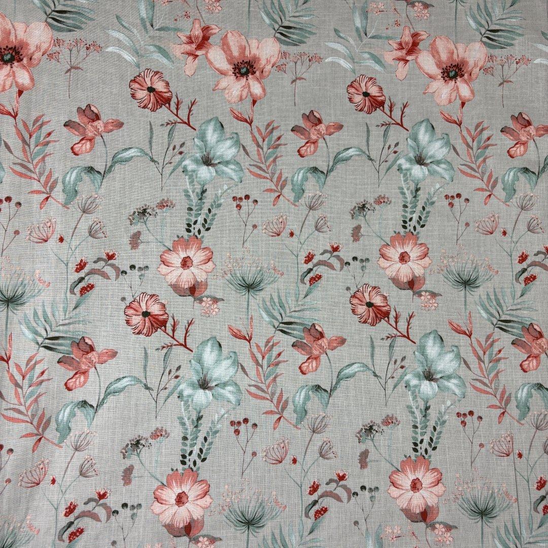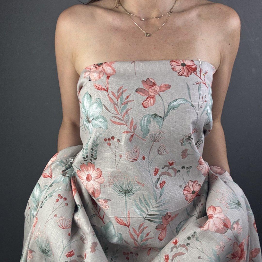 Ramie Linen and Cotton Moody Summer is 145cm wide. This is a new sampling we are very excited to show you. Ramie Linen and Cotton is a fantastic mix of two natural fibres that creates a breathable cloth.