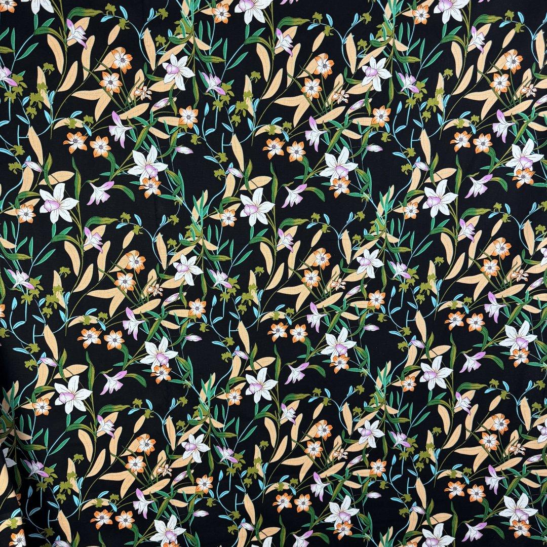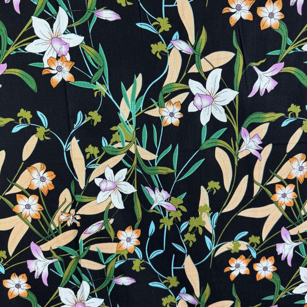 Ramie Linen and Cotton Summer Flowers on Black Background is new sampling we are very excited to show you. Ramie Linen and Cotton is a fantastic mix of two natural fibres that creates a breathable cloth.