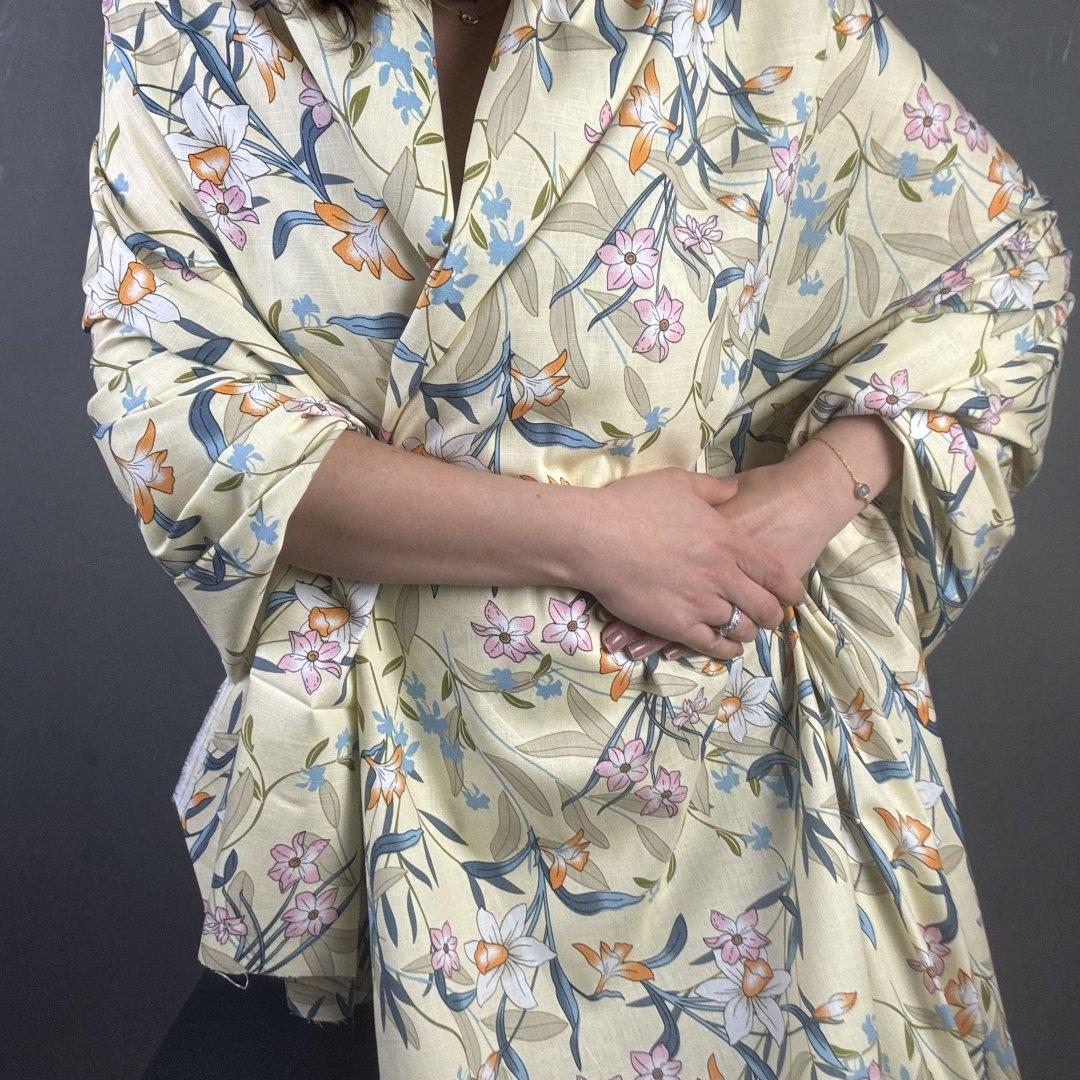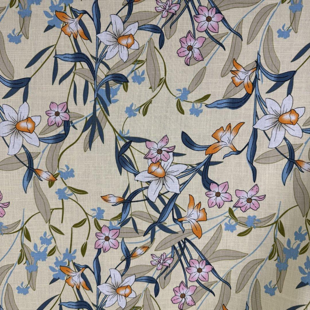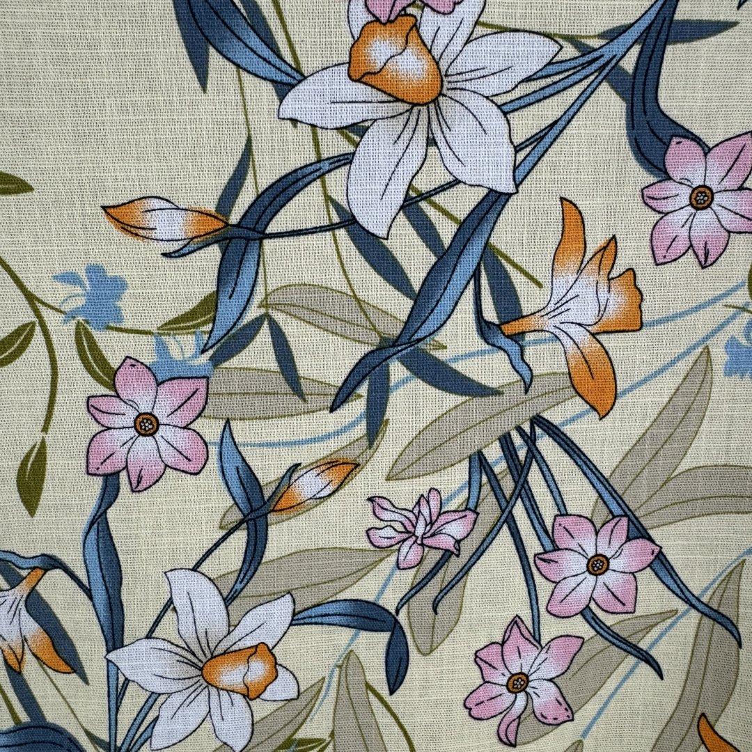 Ramie Linen and Cotton Summer Flowers on Cream Background is 1445cm wide. This is a new sampling we are very excited to show you. Ramie Linen and Cotton is a fantastic mix of two natural fibres that creates a breathable cloth.