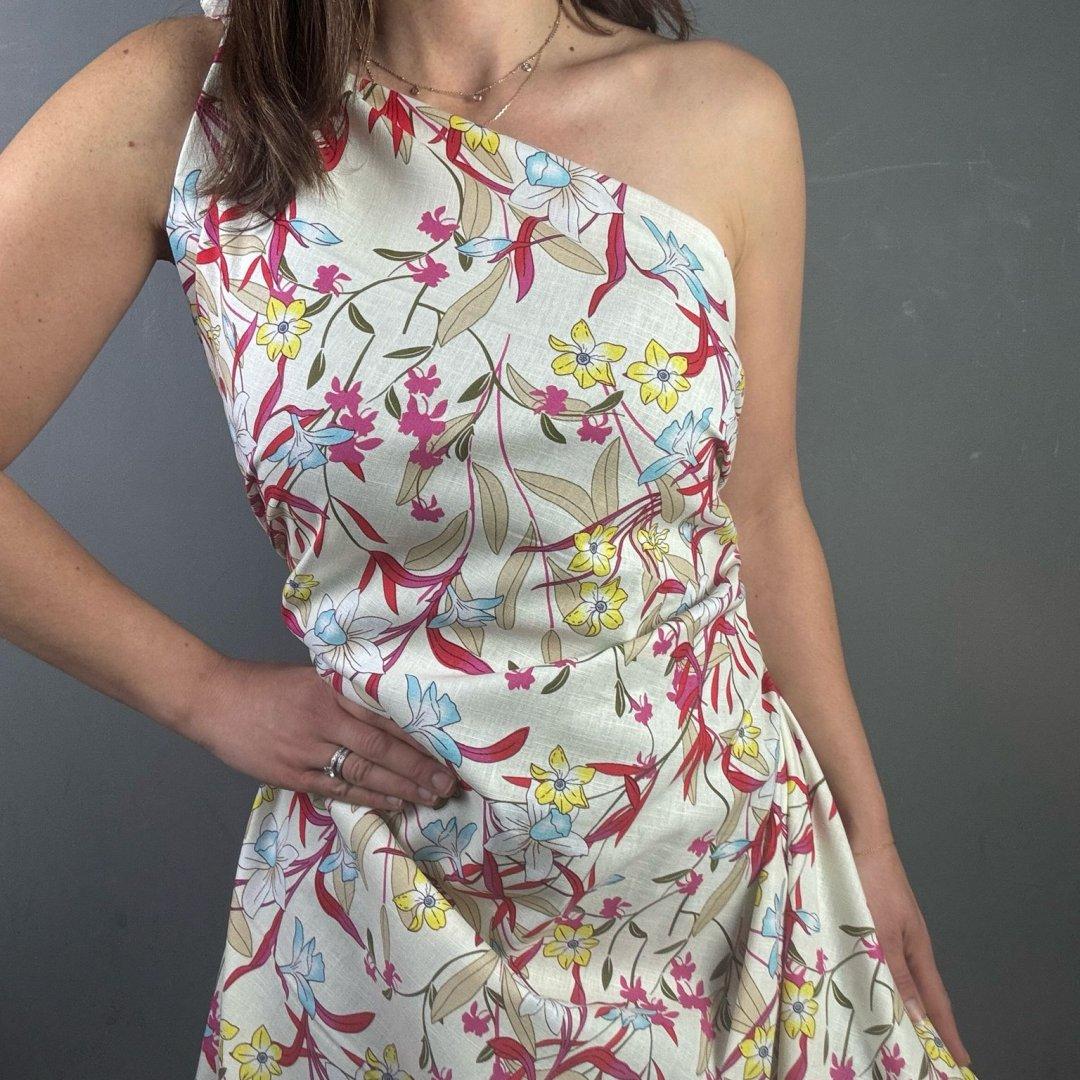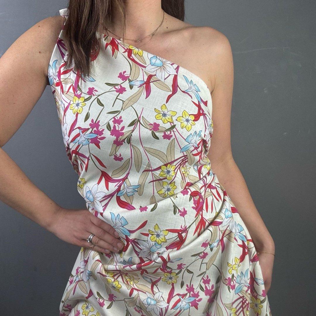 Ramie Linen and Cotton Summer Flowers on White Background is 1445cm wide. This is a new sampling we are very excited to show you. Ramie Linen and Cotton is a fantastic mix of two natural fibres that creates a breathable cloth.