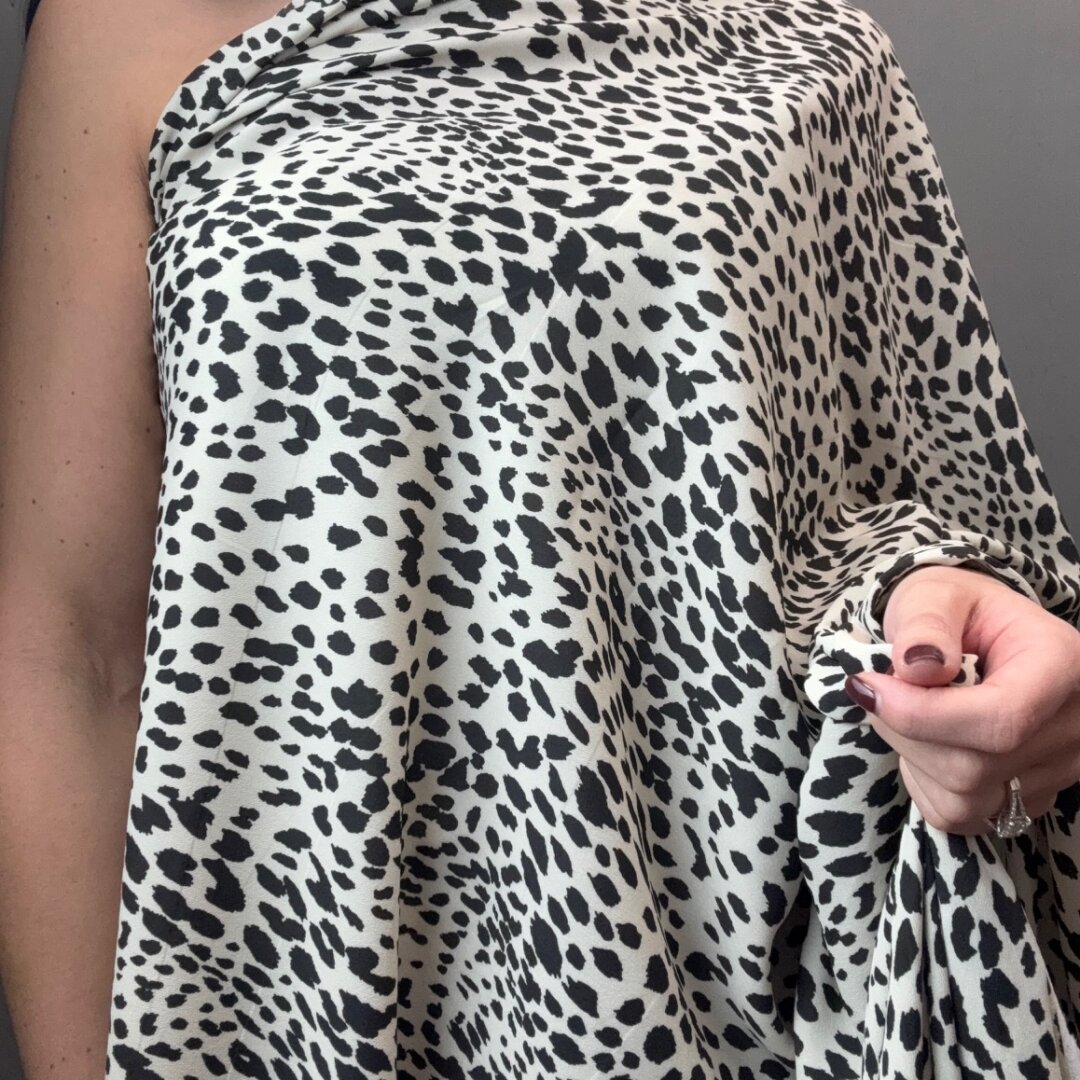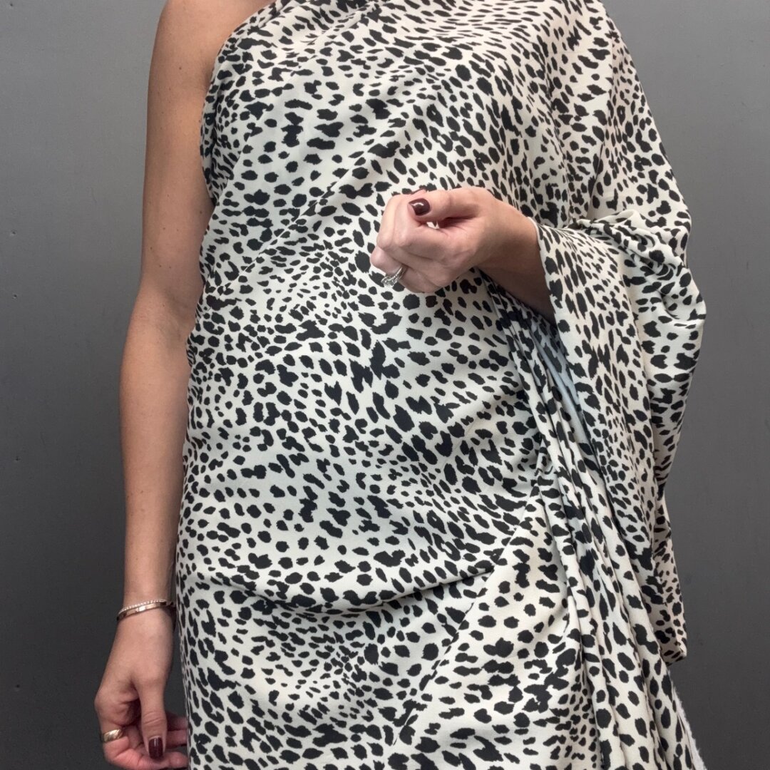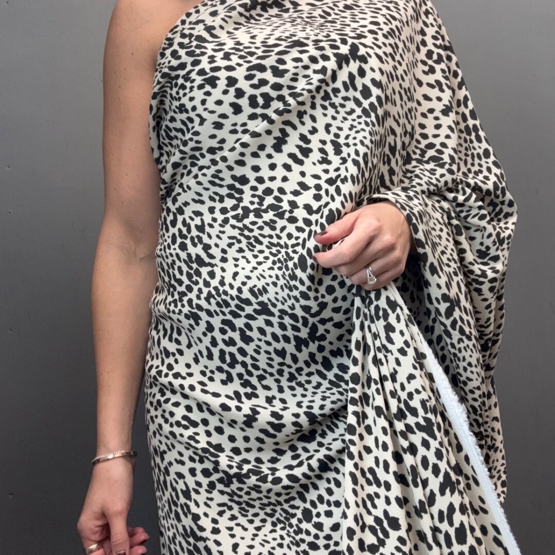 Rayon Print is 145cm wide. This lightweight fabric has a fluid drape, making it ideal for skirts, dresses, wide-leg trousers, kaftans, beachwear, and so much more. A pleasure to sew.