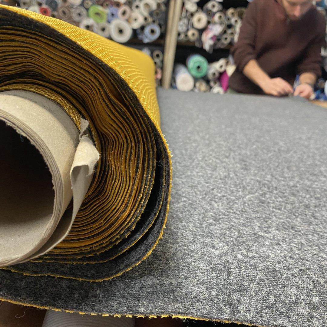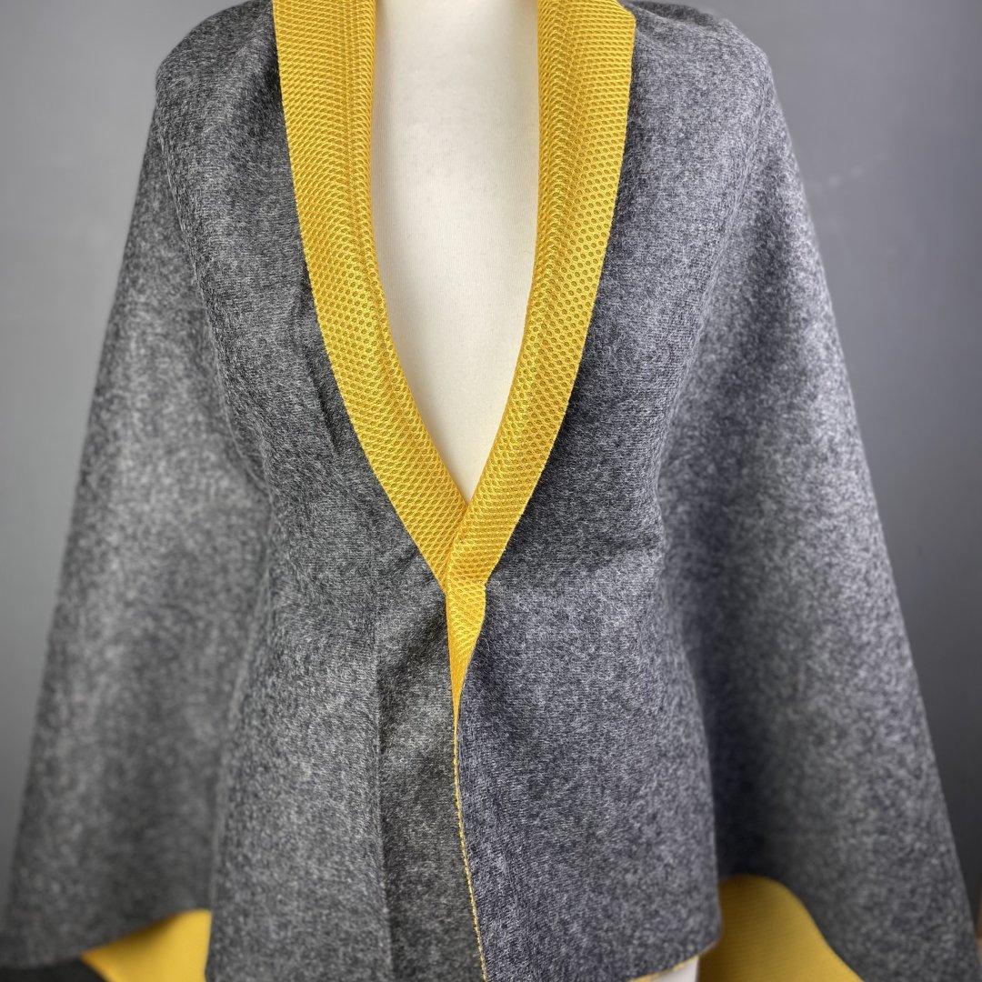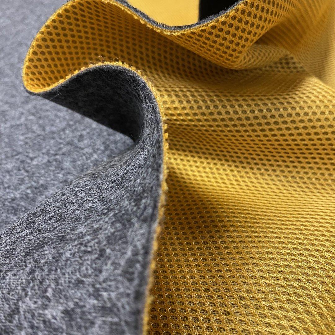 Reversible Sports Damage is 150cm wide. This is a medium weight reversible wool and mesh fabric. A textured mesh vibrant yellow on one side and a mottled grey on the other. Reversible Sports is perfect for bomber jackets, coats, jumpers, shift dresses, mini skirts, bags and more. This is a happy, everyday fabric however there is a damage of black dots that appear intermittently throughout the yellow side.