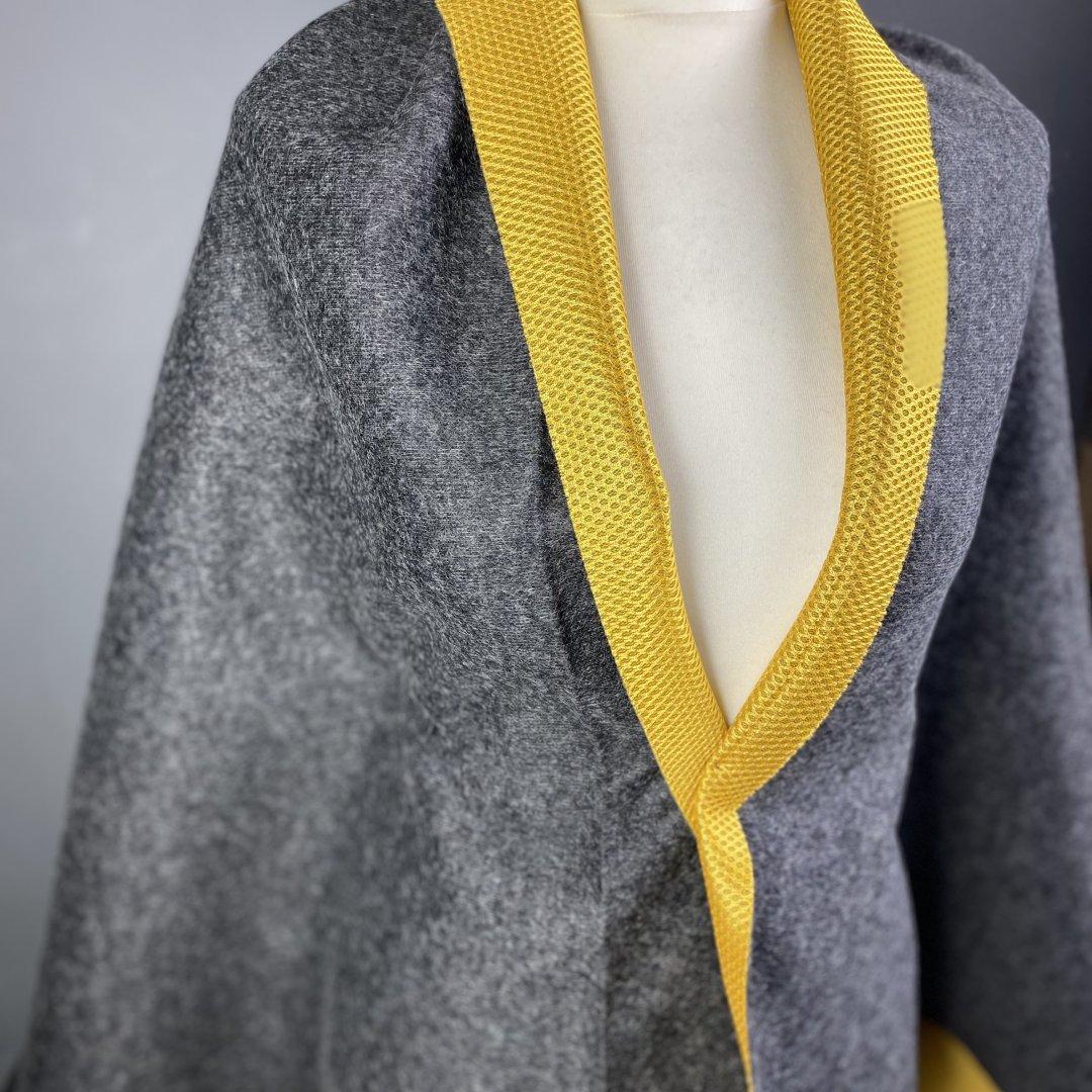 The beauty of this fabric is that it is reversible meaning a pop of yellow mesh is ideal for cuffs, collars, pockets, stripe detailing and more. This is an easy to sew fabric and it doesn’t fray. Reversible sport will keep you nice and warm.