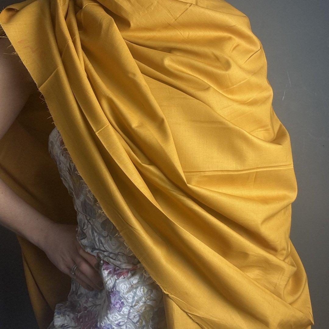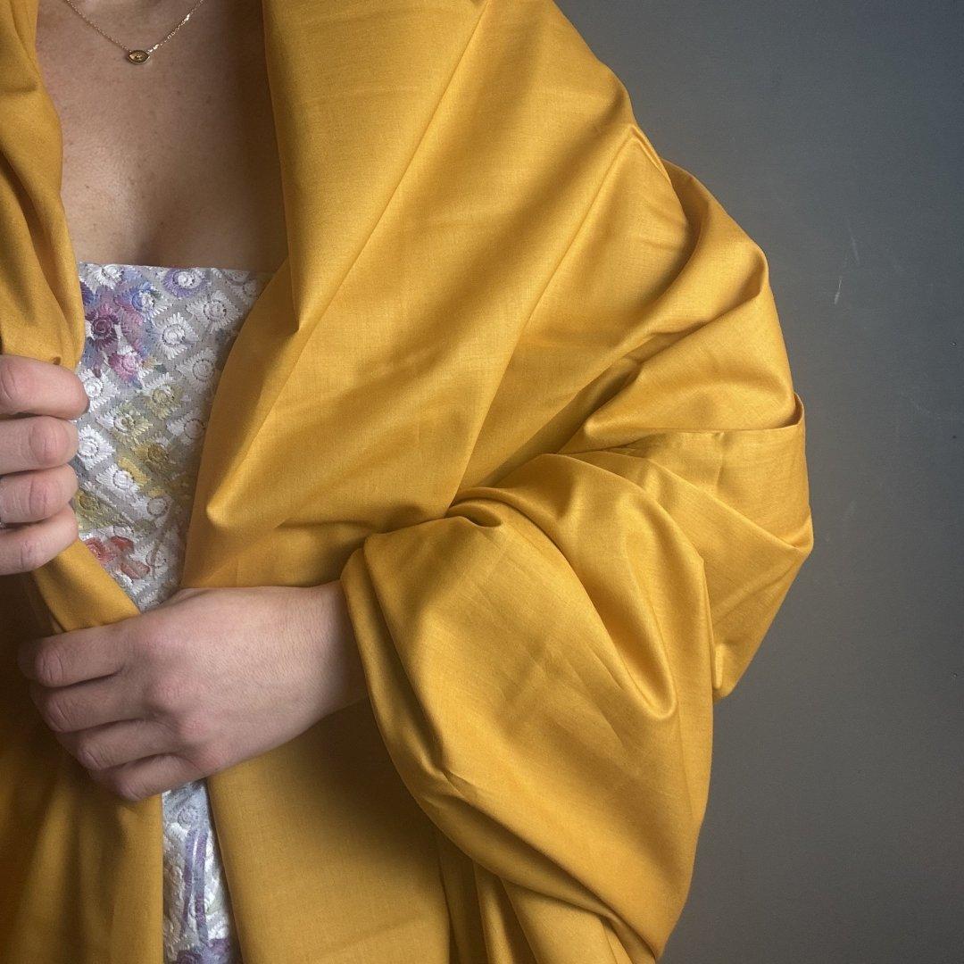 Rich Gold Fine Lawn is 145cm wide. This is a light weight, super soft pure cotton that is perfect to live in your fabric stash waiting to be made into shirts, tops, lining skirts/ dresses/ bags, shirred dresses, beach kaftans, loose trousers. shorts and all crafts.