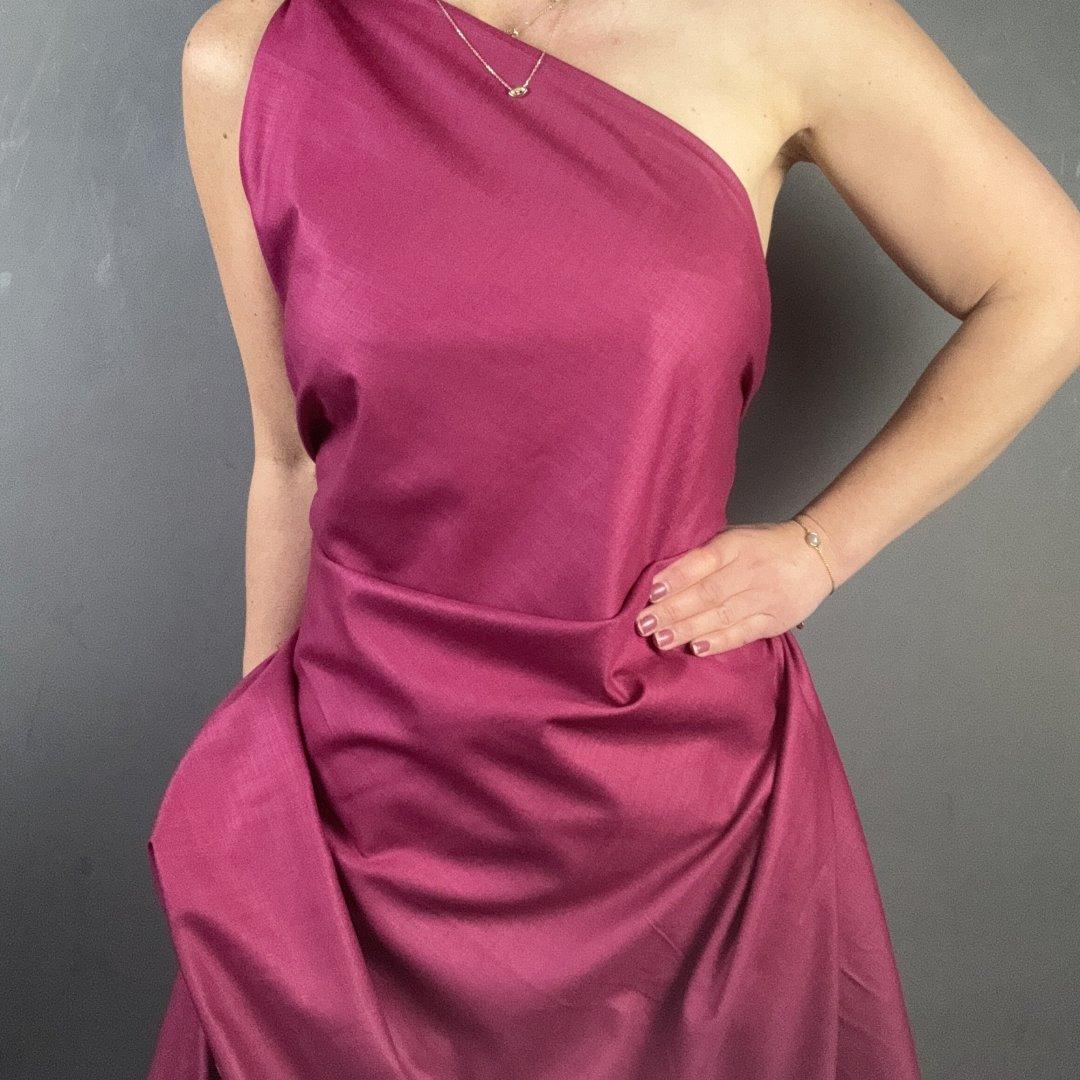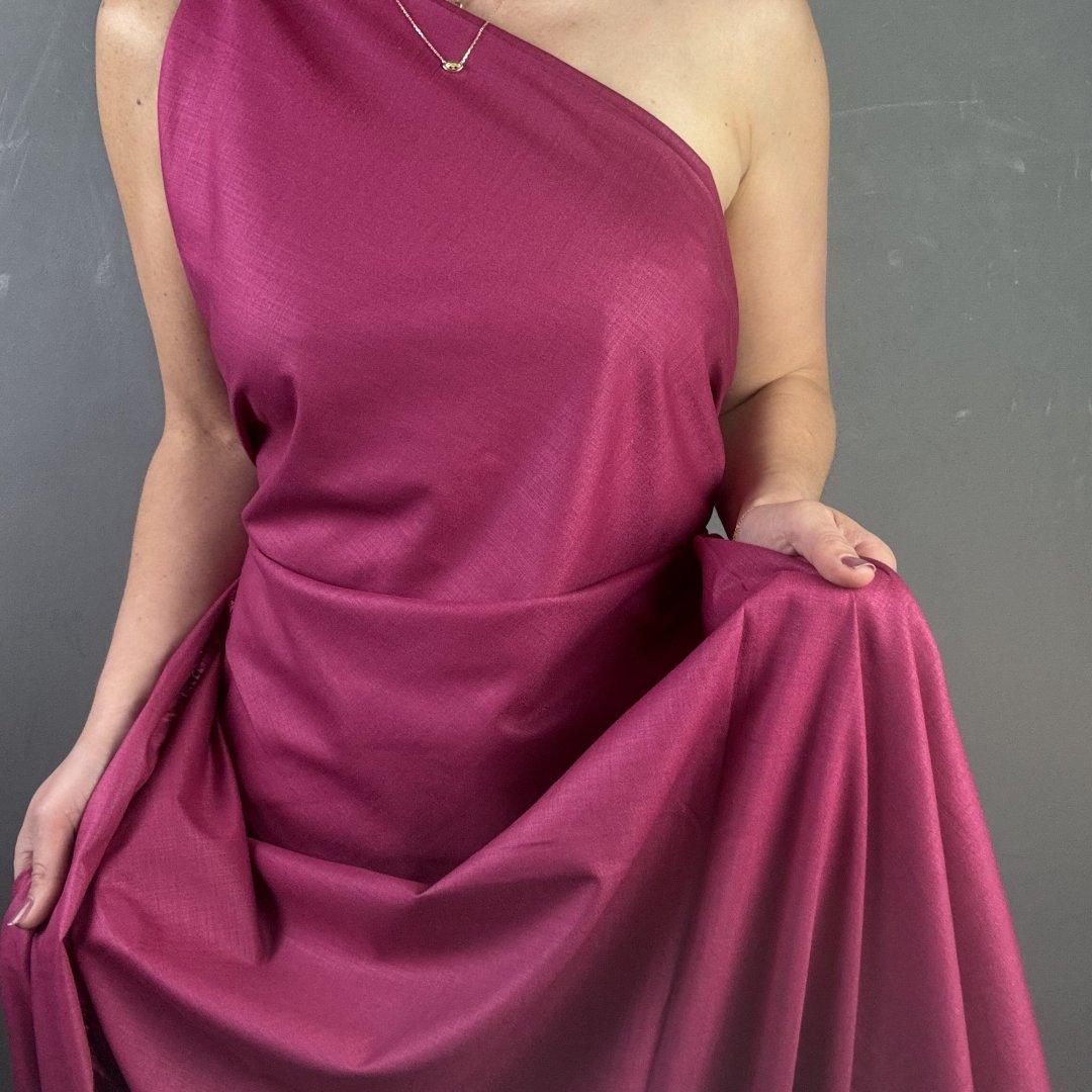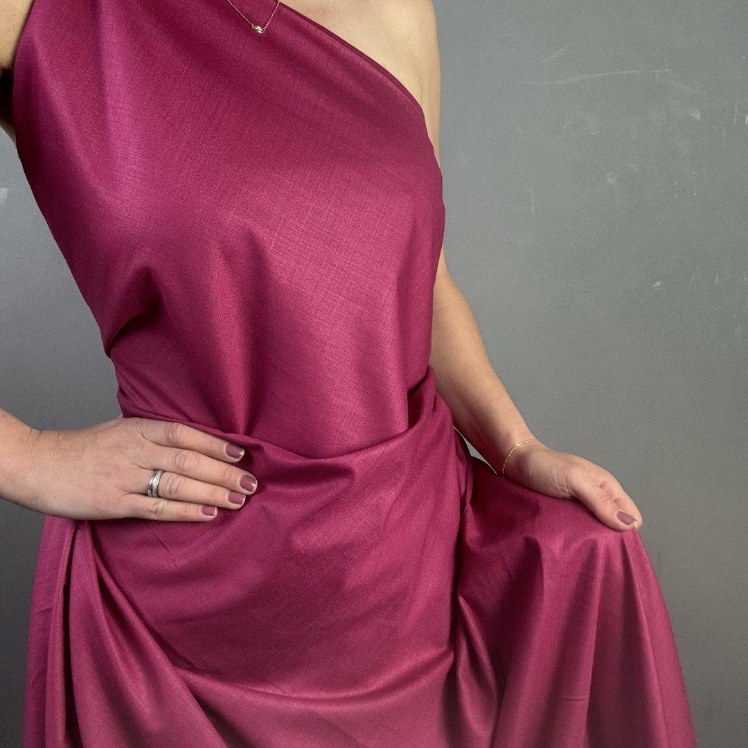 Rich Wine Linen, Rayon and Polyester is 140cm wide. This is a light weight plain cloth with a lot of drape and body. With a slight shine this cloth is easy to sew and will be a pleasure to wear for both day and evening wear.