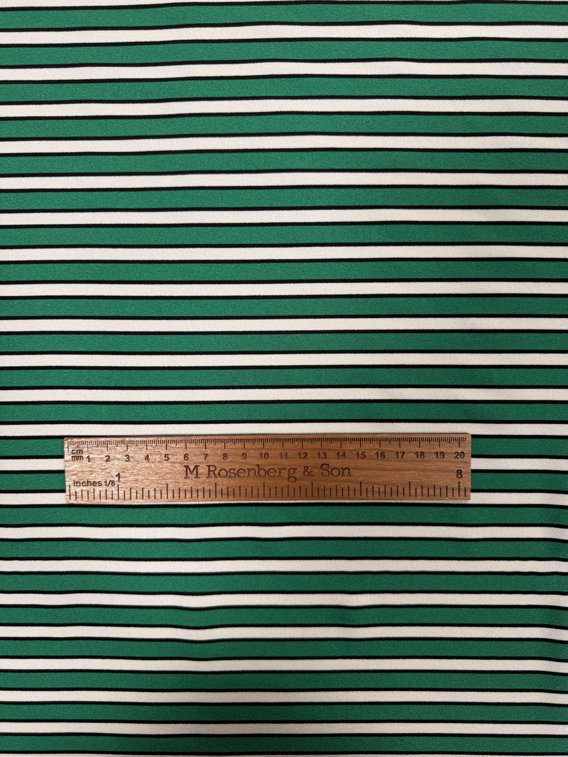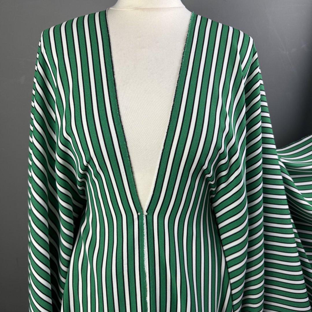 Satin Back Polyester Stripe is 145cm wide. This is a stunning light weight fabric with a fluid swishy heavy drape to it. The wrong side is silky smooth and the right side of this cloth is vibrant and fun with its complimenting colour tones.