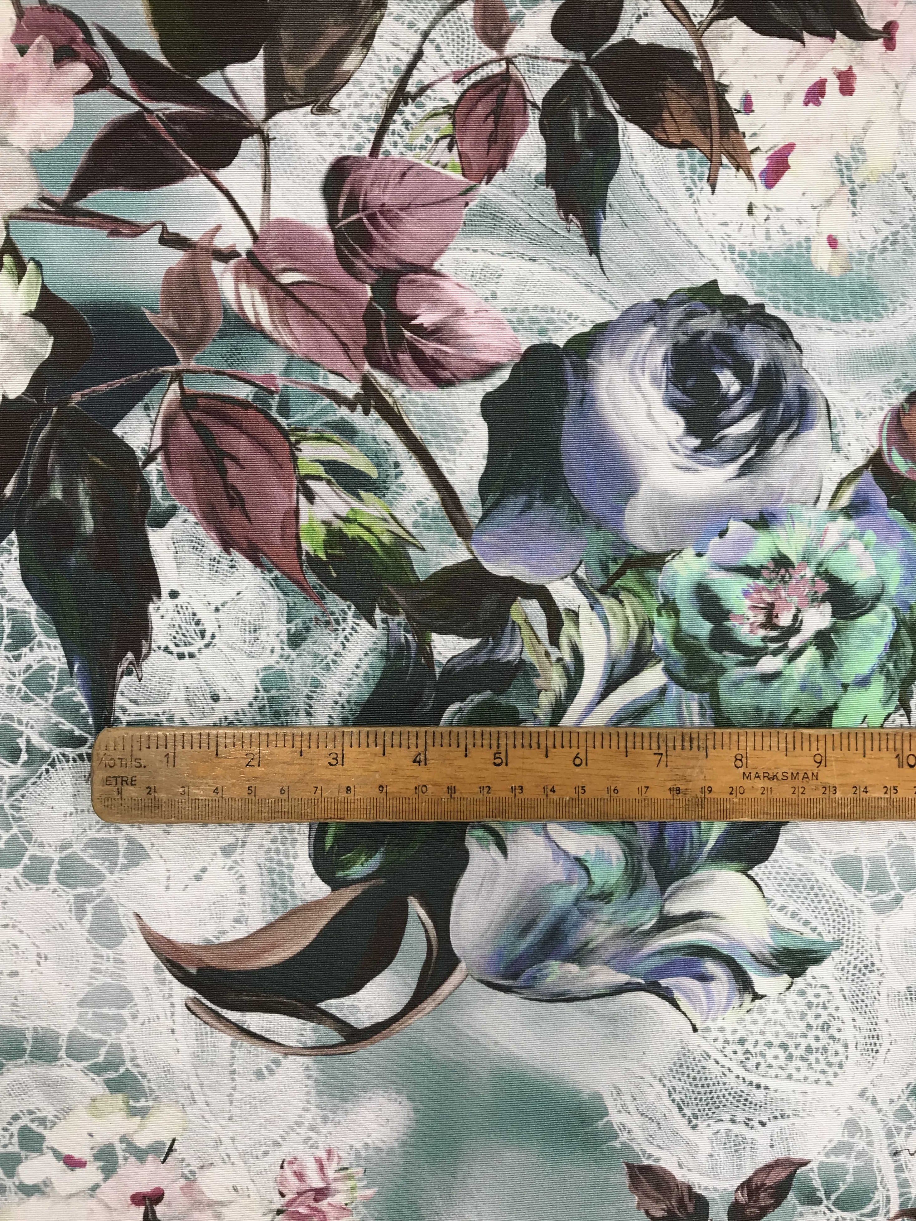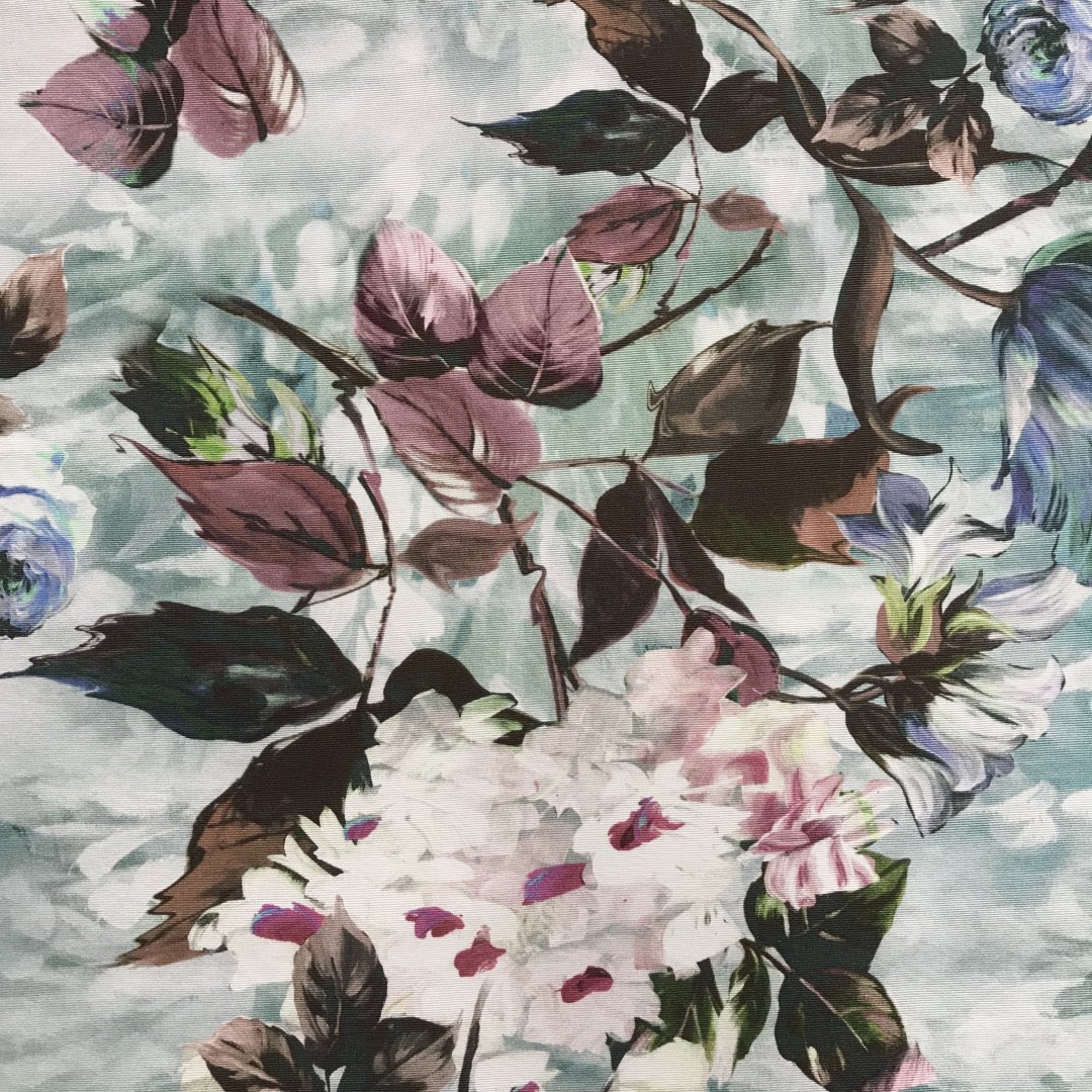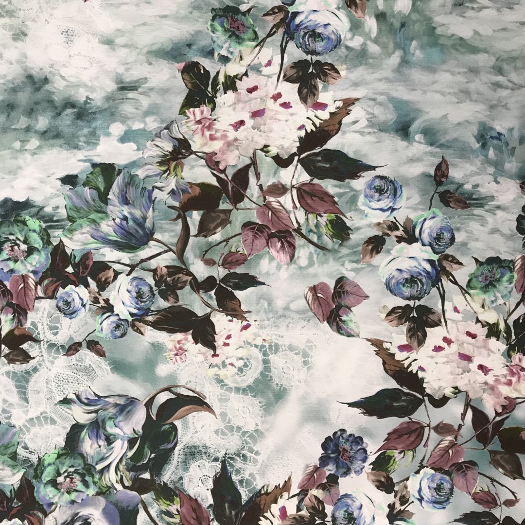 Sea of Flowers is a heavy weight cotton, 60″ wide (150cm). This heavily patterned romantic print is on a very easy to sew base cloth which is perfect for beginners. Try this fabric in V1486, B6015, M6706, or K3682. This Italian fabric is great for pleated skirts, circle skirts, shift dresses, structured jackets and so much more. This print has a small double border by each selvage given you the option to use or not. This is a truly beautiful cloth suitable for special occasions.