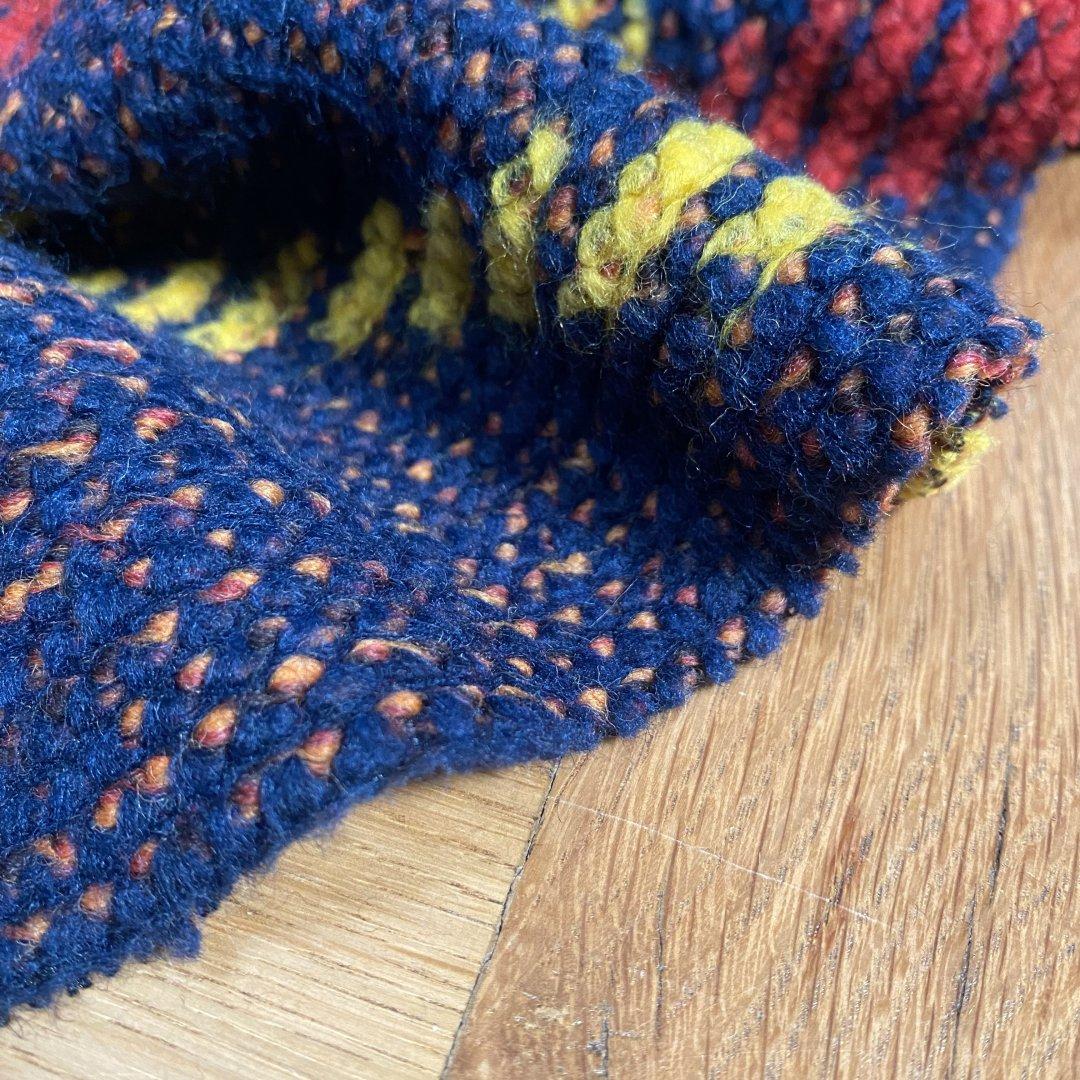 Soft Wool Mix Abstract Diamond is 150cm wide. This is a heavy weight, soft, textured wool mix that is ideal for cardigans, coats, jackets, wrap tops, ponchos, capes and more. With a classic design this fabric is just what you need for when it’s cold outside.
