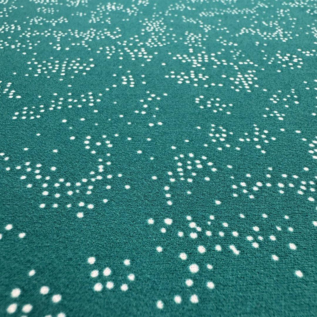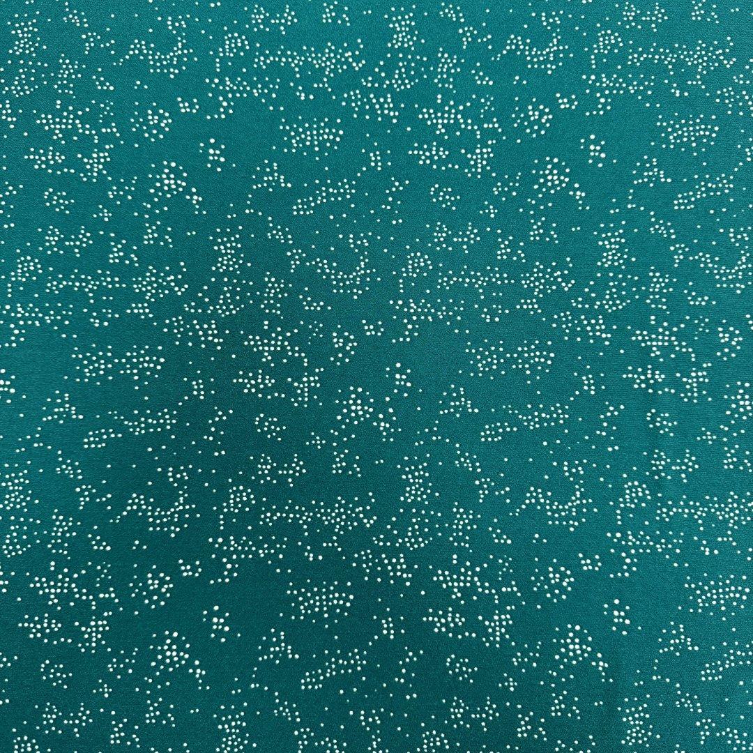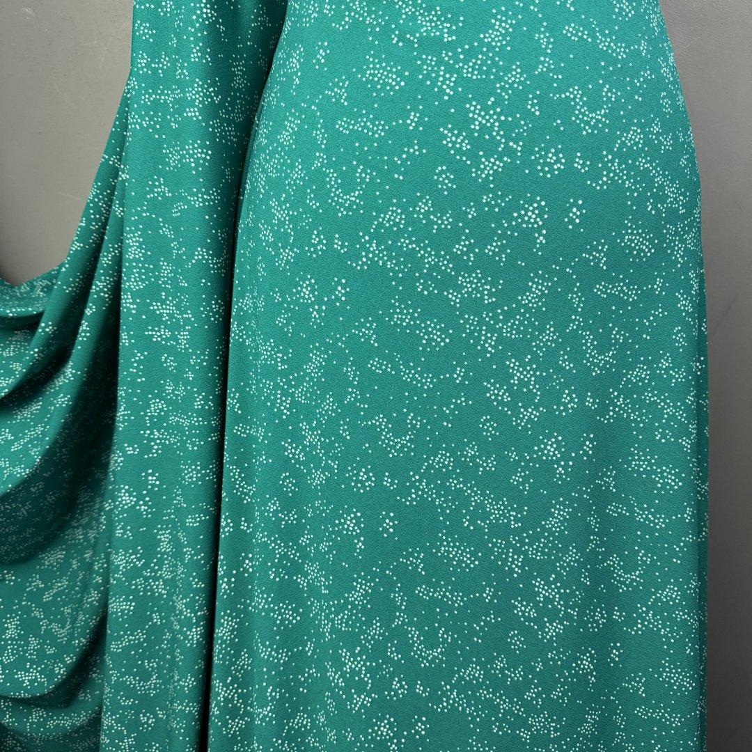 Speckle Green Jersey is 150cm wide. This is  light weight polyester elastane with a heavy drape. Our polyester elastane is a quality cloth that will offer swish and stretch to any garment. A bright and stunning yet simple print this fabric will create everyday garments such as, maxi dresses, floaty tops, wide leg trousers, leggings, wrap around dresses, wrap tops, jumpsuits and so much more.
