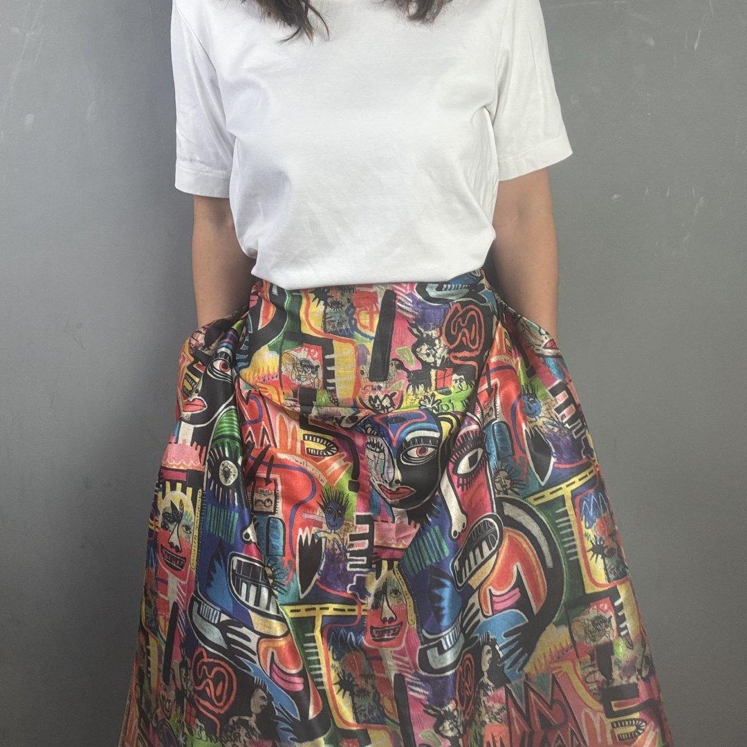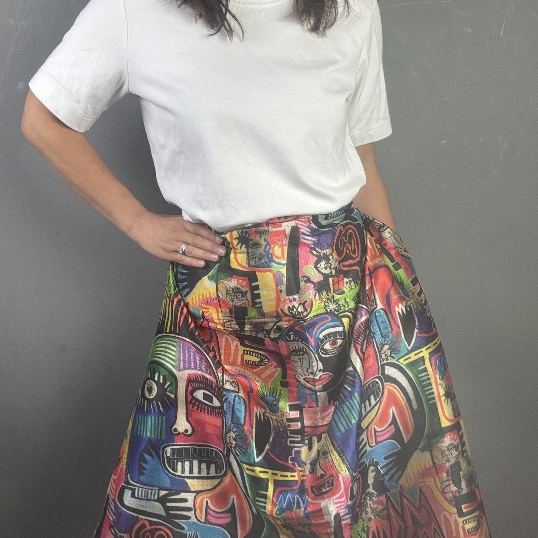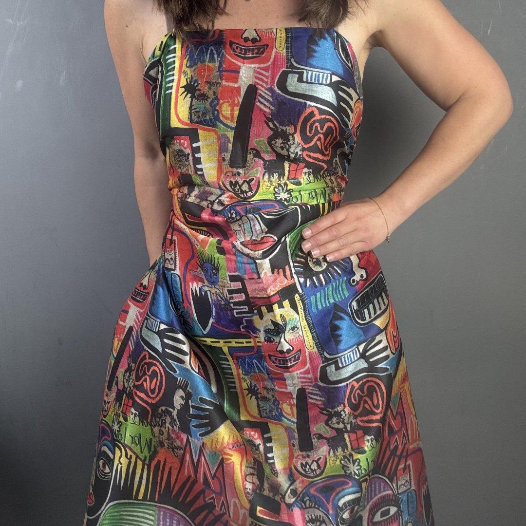 Street Graffiti Bamboo is 20% Bamboo / 40% Viscose / 40% polyester, 110cm wide. This is a light weight, breathable fabric that is perfect for shift dresses, circler skirts, pleated skirts, shirts, tunic tops, straight skirts, summer weight jackets, A- line skirts/ dresses and so much more.