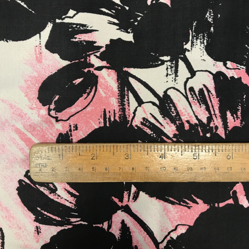The Flower Border is 100% Polyester, 60″ wide (150cm). This gorgeous fabric is floaty and elegant with a hint of punk glamour added by the black statement flowers. This fabric is perfect for long maxi skirts, dresses, kimonos, 60’s tea dresses, wide leg trousers and even stunning curtains. Do not miss out of this fantastic offer. Washes well at 30 degrees.