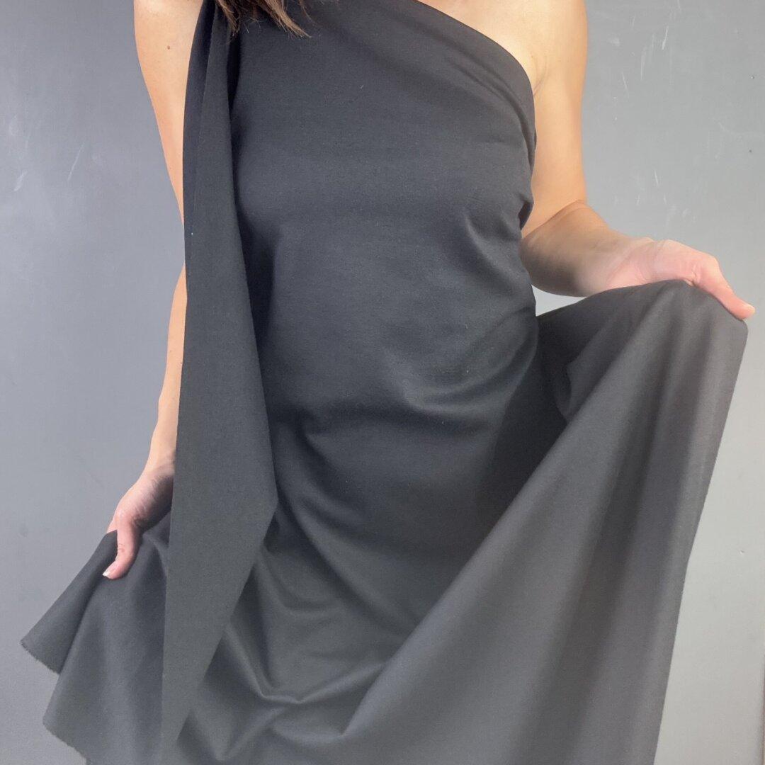 Meet your new go-to fabric: The Ultimate Black Jersey. At 148cm wide and in a classic Ponte Roma weight, this versatile black jersey is the perfect choice for everyday wear.