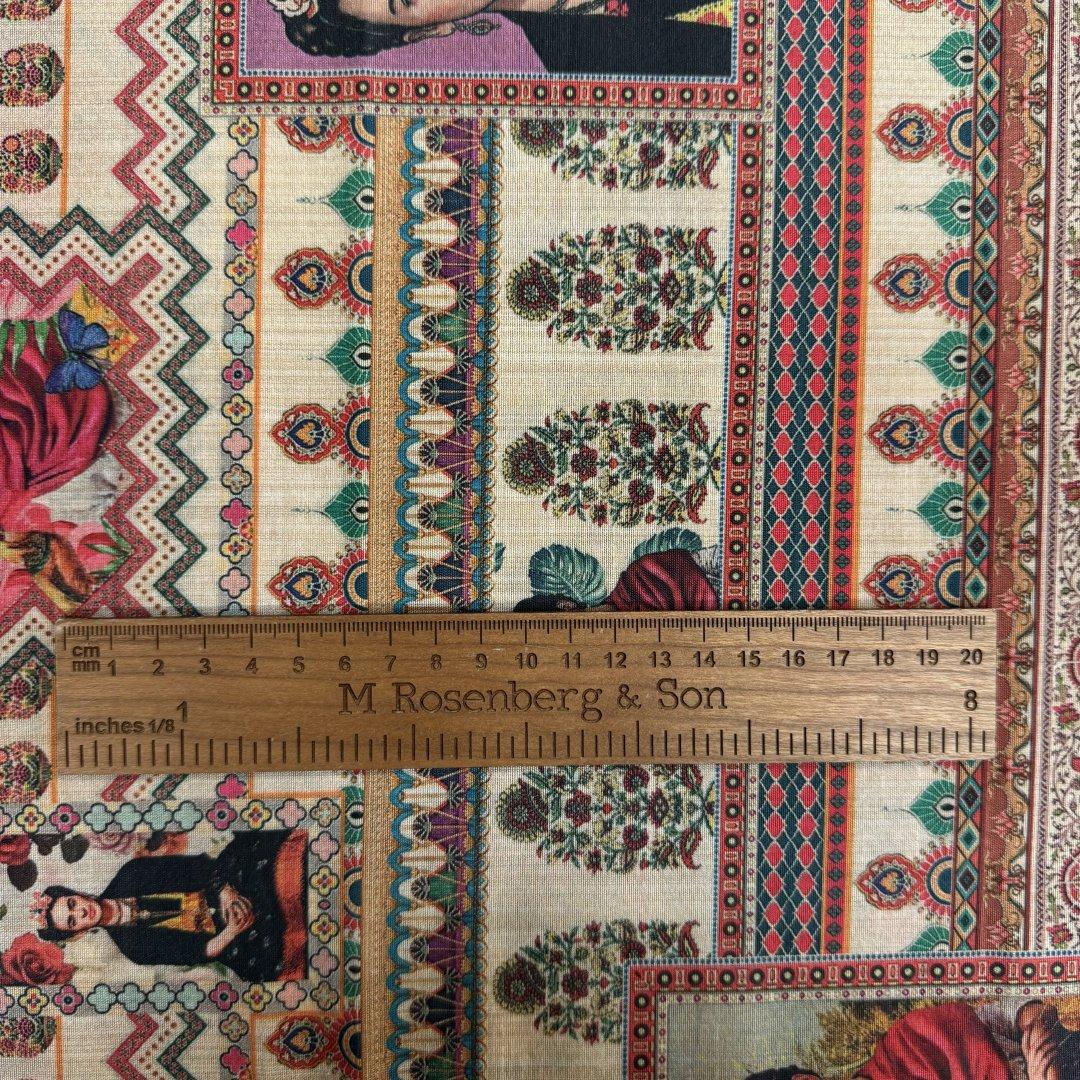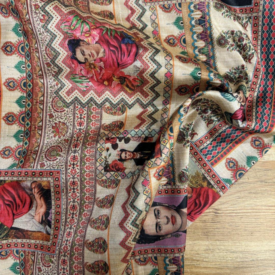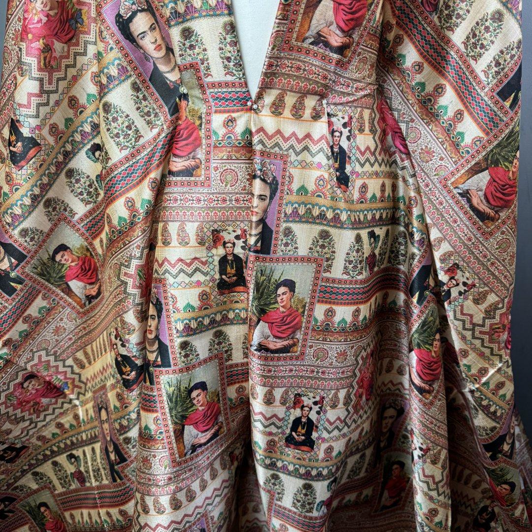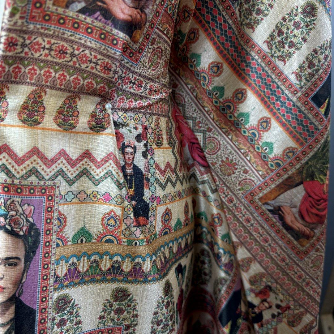 This cloth is slightly sheer in the light. It will be a pleasure to sew and look fabulous in most garments. It’s a busy, colourful fabric that is suitable for day and occasional wear. Enjoy this cloth while stocks last!!!