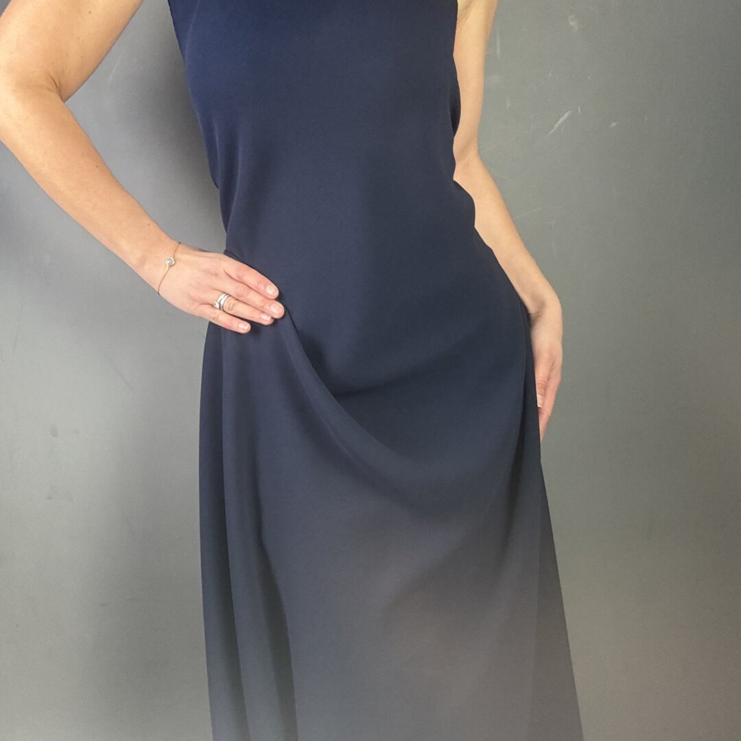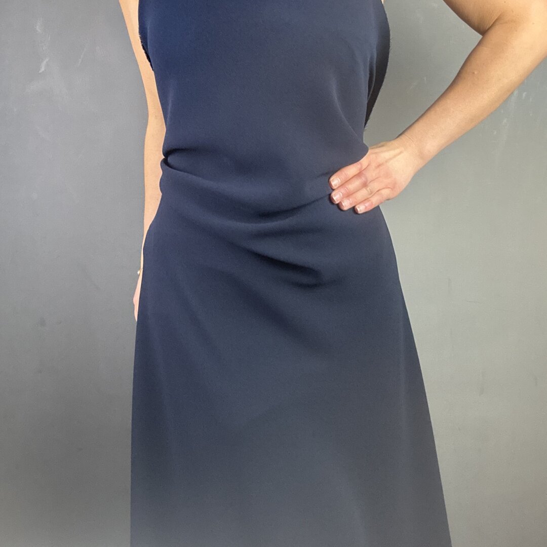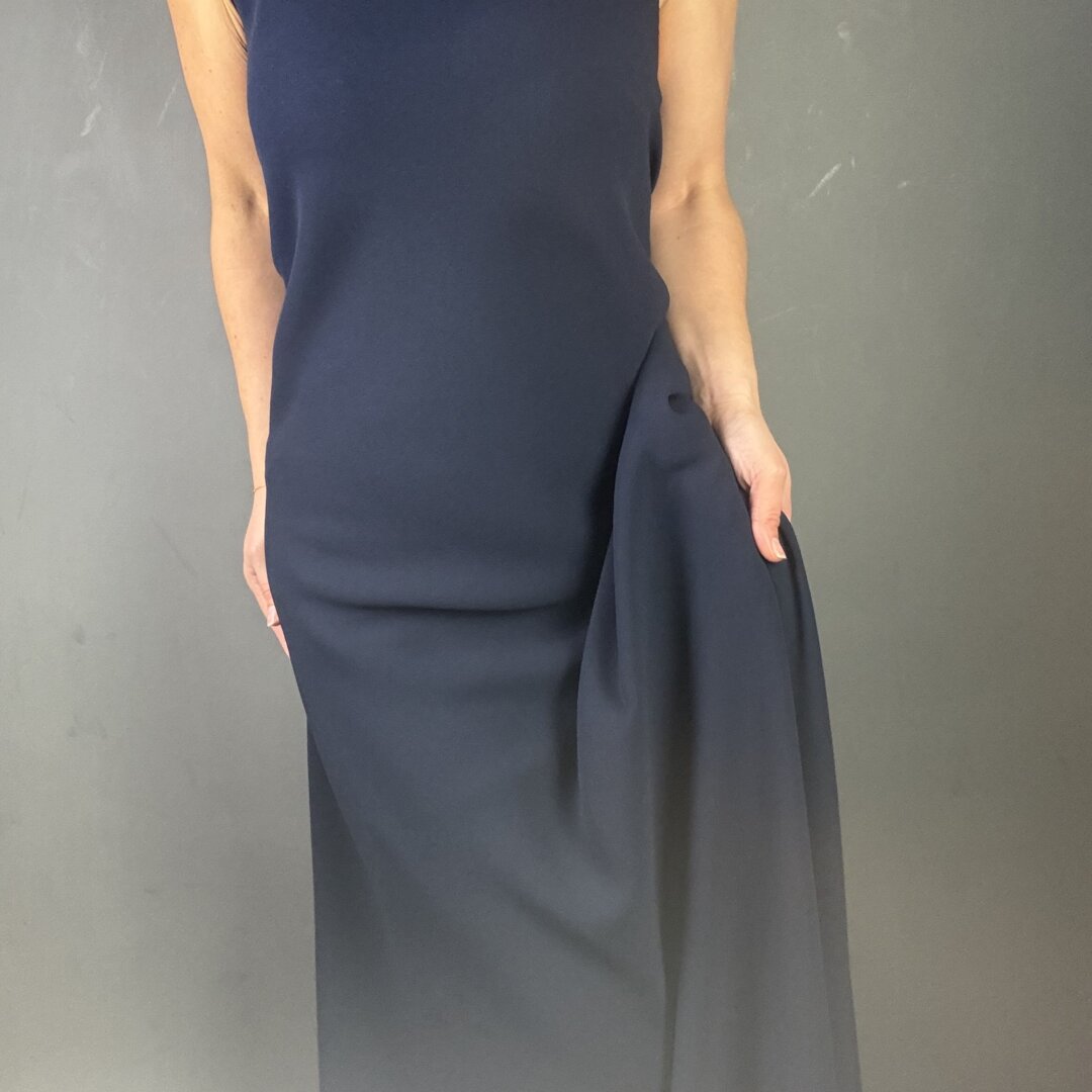 Triple Crepe in Navy is 60″ wide (150cm). This heavy weight polyester crepe is perfect for skirts, dresses, waterfall cardigans, trousers, duster jackets and more. Crepe is great for special occasions and evening wear. Triple Crepe is known for it’s heavy dramatic drape that is flattering for all body shapes. Try Maker’s Atelier brand new relaxed drawstring dress pattern for an individual statement look. This fabric is easy to sew and washes well on a 30 degrees wash. Please note this fabric will fray and comes in other colour ways! This fabric appears darker in real life. Click Here to Mix & Match with a beautiful silk.