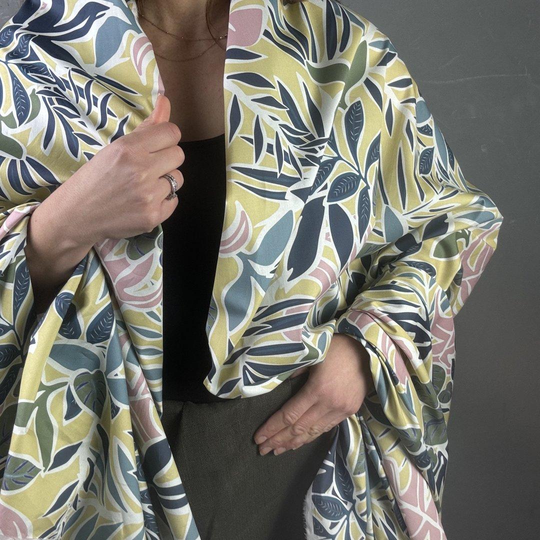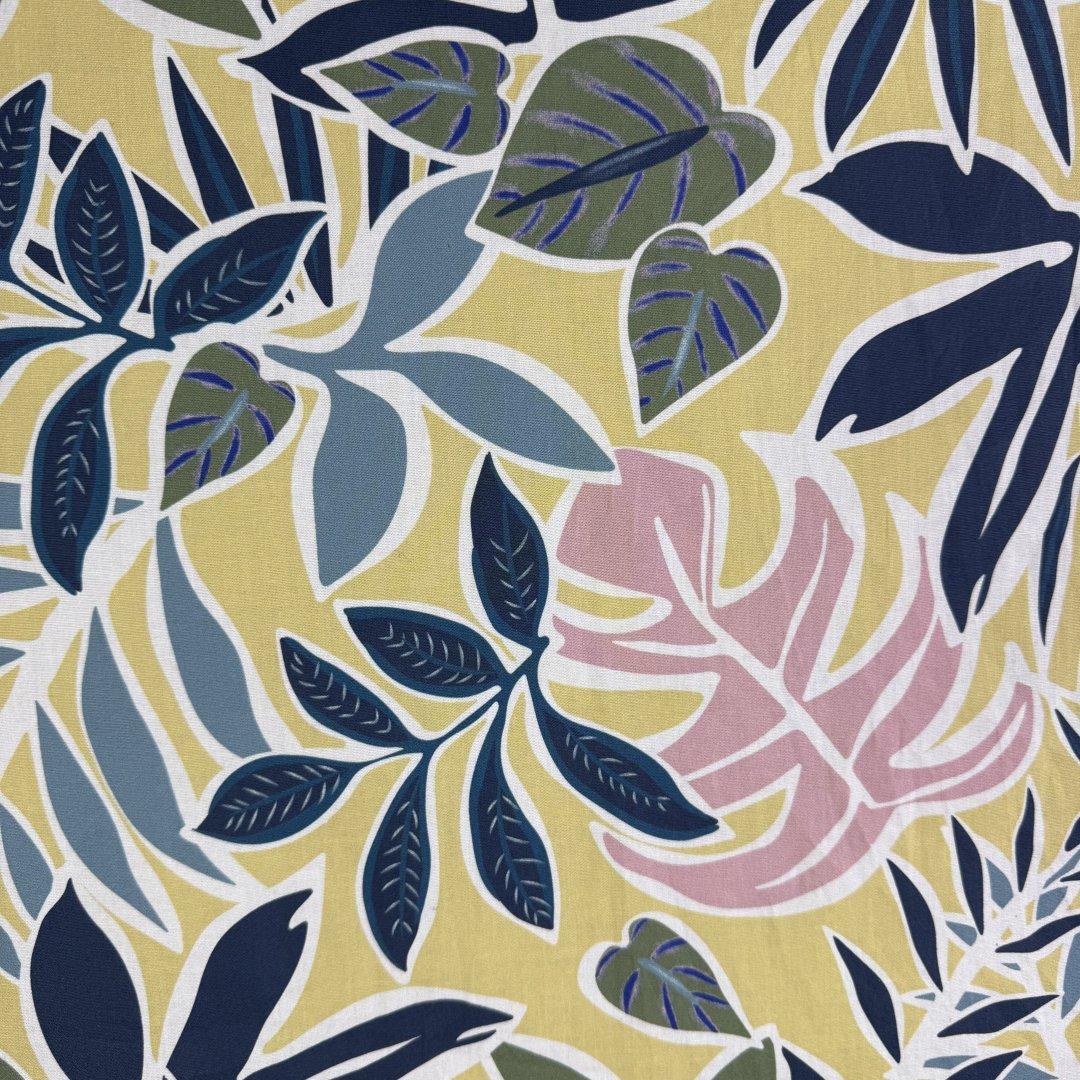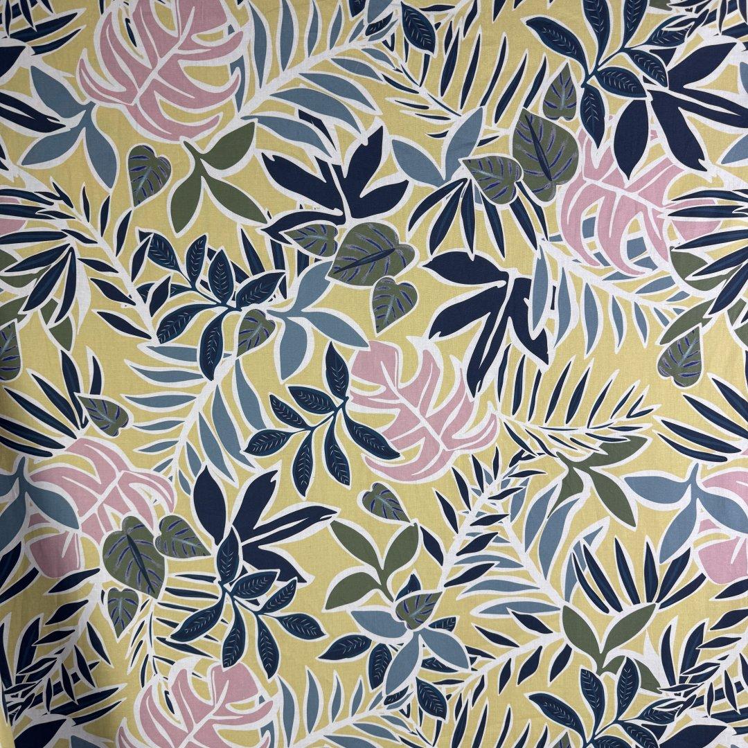 Tropical Fresh Cotton and Elastane is 145cm wide. The colour tones create a modern feel to this tropical cloth. This fabric will be a pleasure to sew and wonderful to wear. Ideal for dresses, skirts, tops, loose fitted trousers and more. Make this fabric an everyday staple in the spring/ summer months. Live in this fabric on holiday and always look chic and stylish.