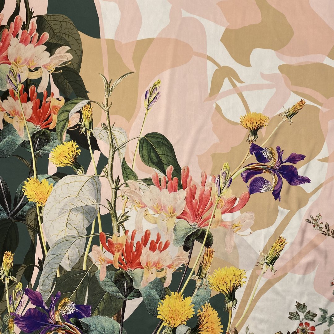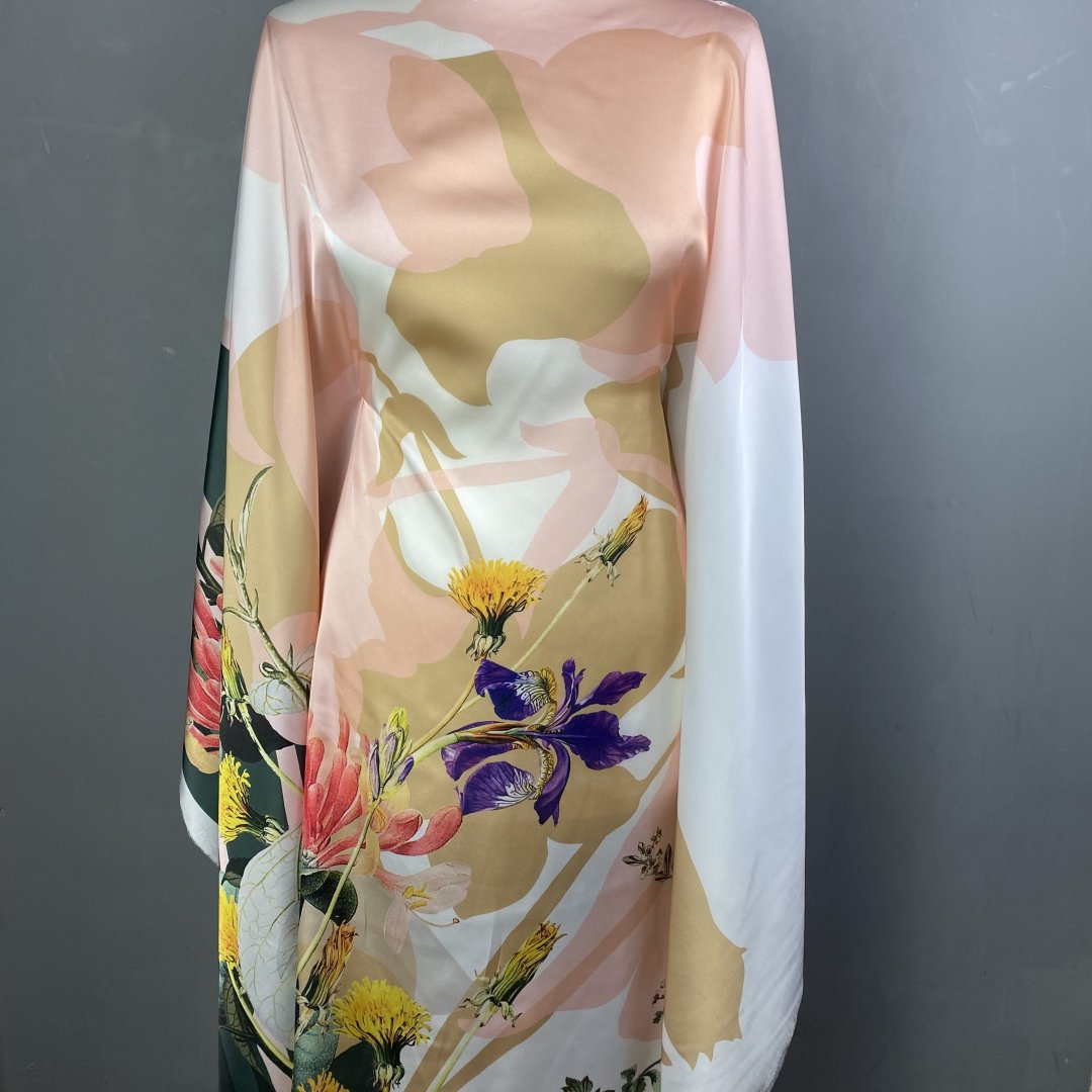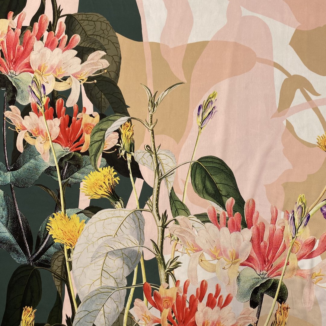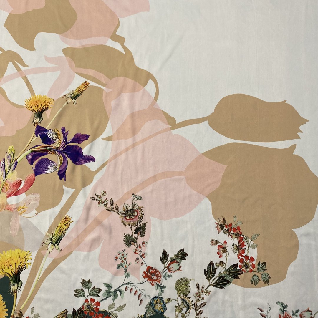 Vintage Miami Panel is 140cm wide. This beautiful polyester is sold in a panel length of approximately 1.1m.