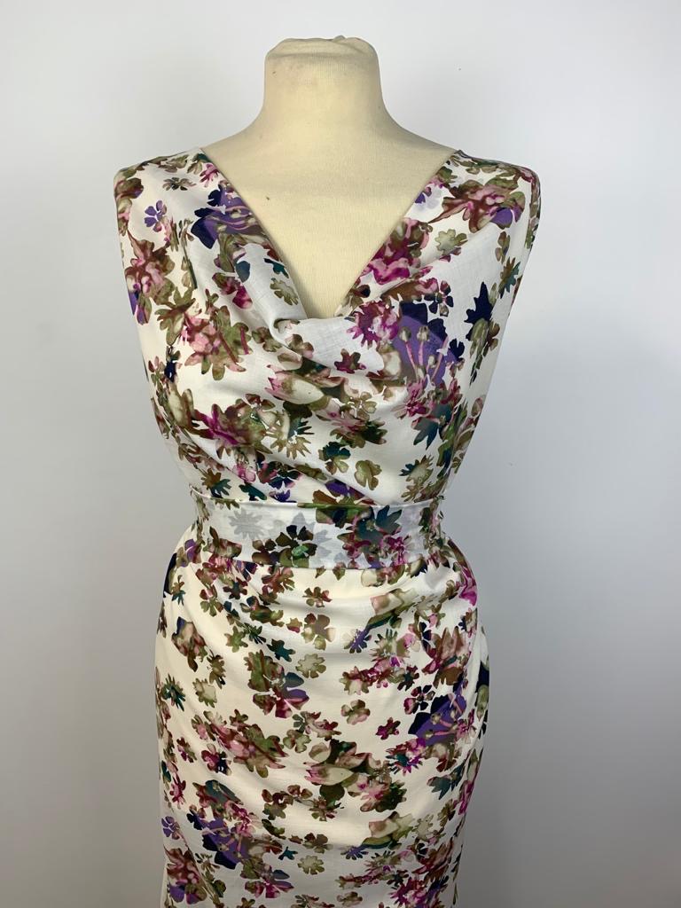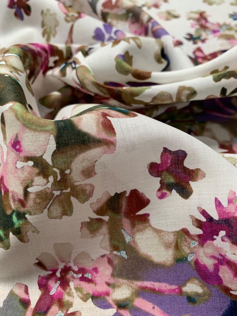 Water Colours is a Fine Lawn, 56″ wide. Fine lawn is a light weight pure cotton that is easy to sew with and suitable for all sewing abilities. At first touch fine lawn is often compared to a floaty silk. This fabric is a natural fibre which means it will softy drape around the body keeping you nice and cool in hot climates. Fine Lawn is perfect for skirts, dresses, blouses, summer wight trousers, shorts, scarves and more. Wash at 30 degrees- minimum cut 0.50cm.